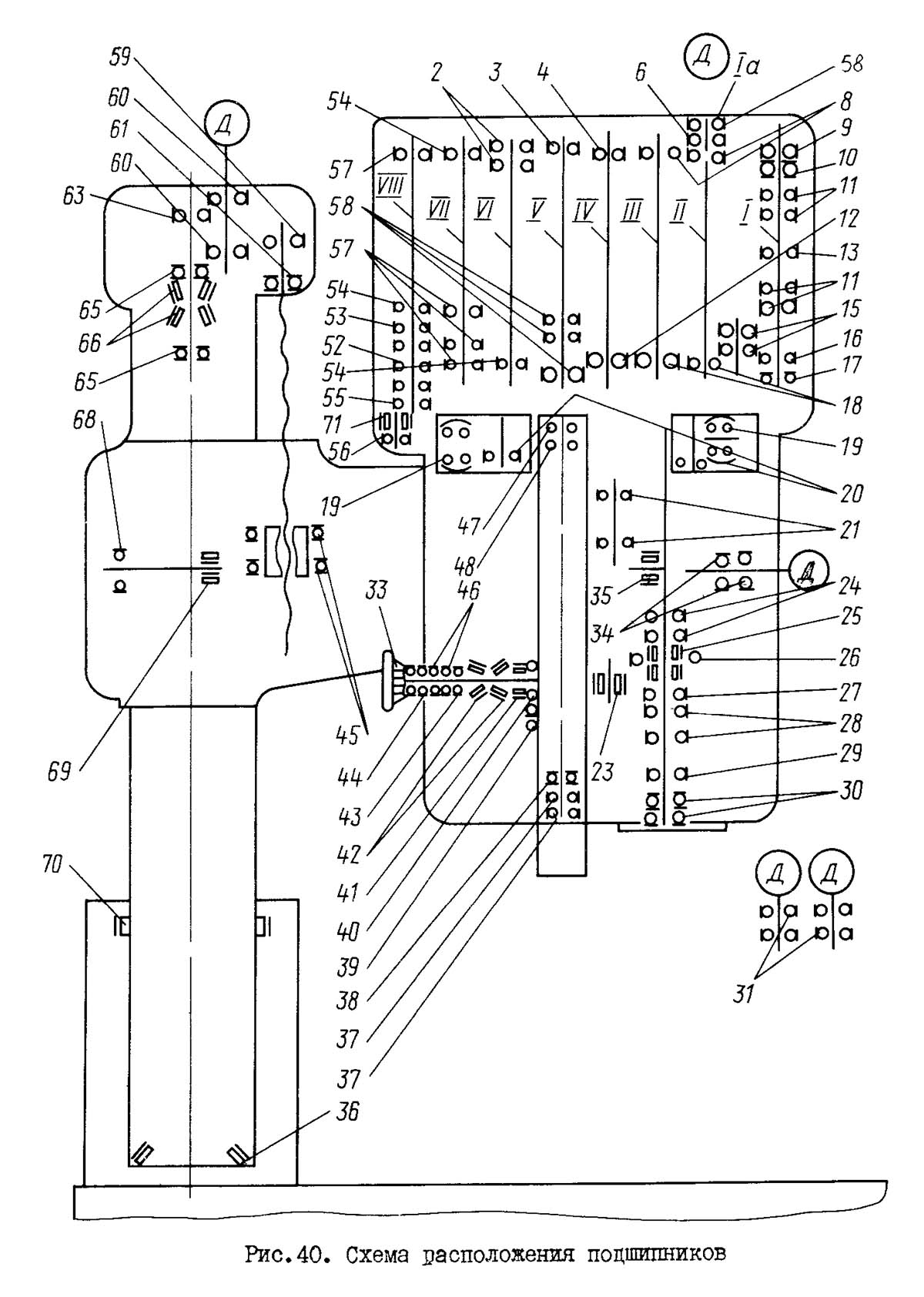 Схема установки підшибників на радиально-сверлильном станке 2а554. Дивитись у збільшеному масштабі