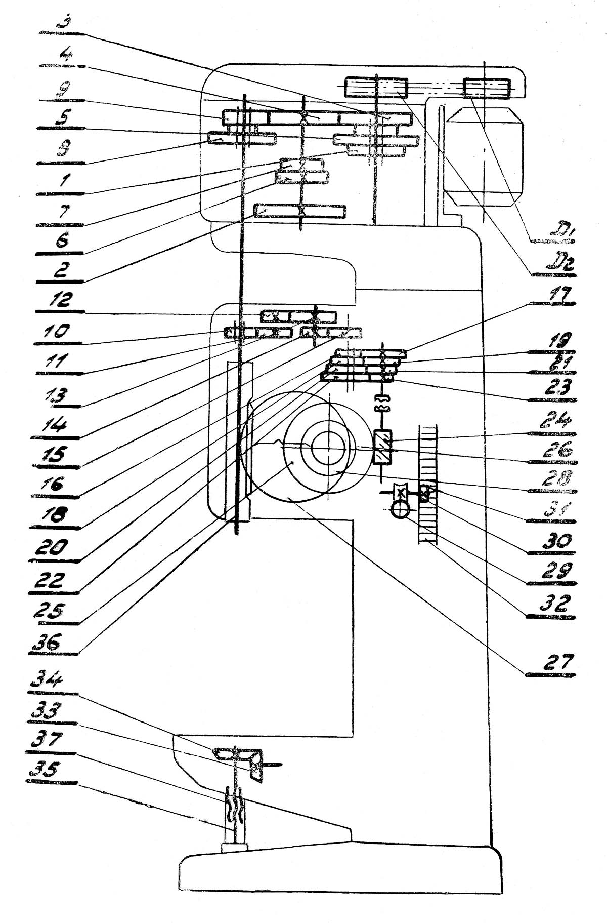 Механізми верстата отримують рух від індивідуального електродвигуна потужністю 1,7 кВт і з числом оборотів за хвилину 2850, за допомогою клинопасової передачі через шківи Д1, Д2. Клиновий ремінь типу 0-800.