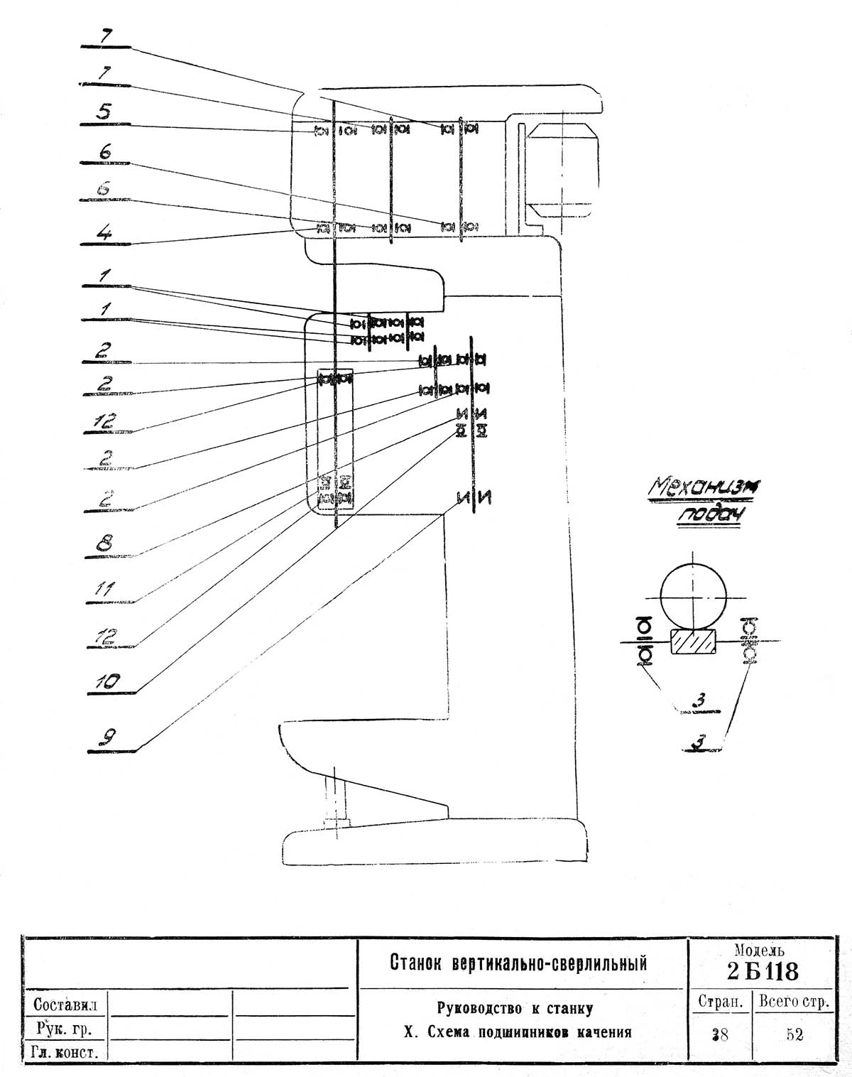 2. Cхема розташування підшипників на верстаті 2Б118. Дивитись у збільшеному масштабі