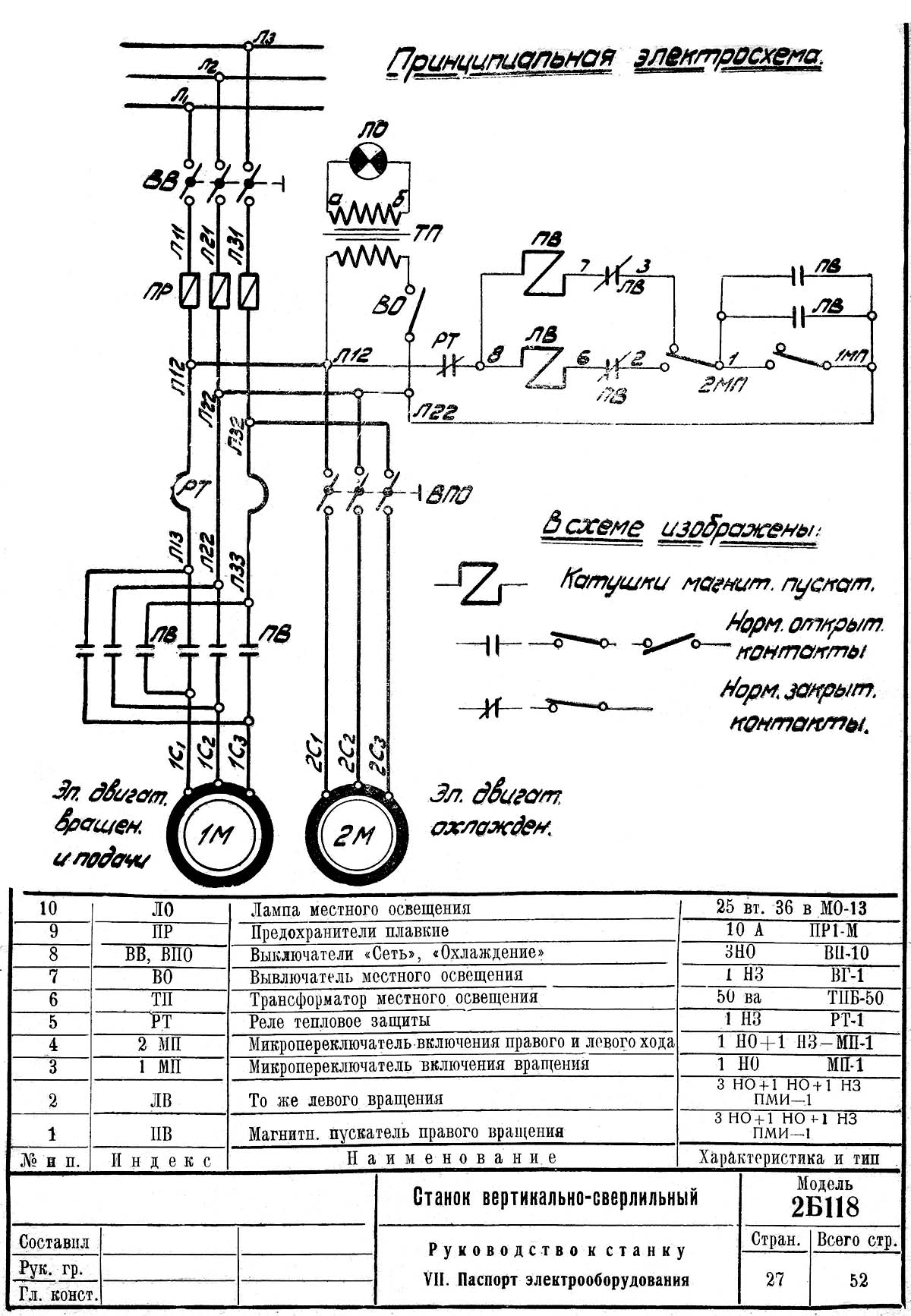 Електрична схема сверлильного верстата 2Б118. Дивитись у збільшеному масштабі