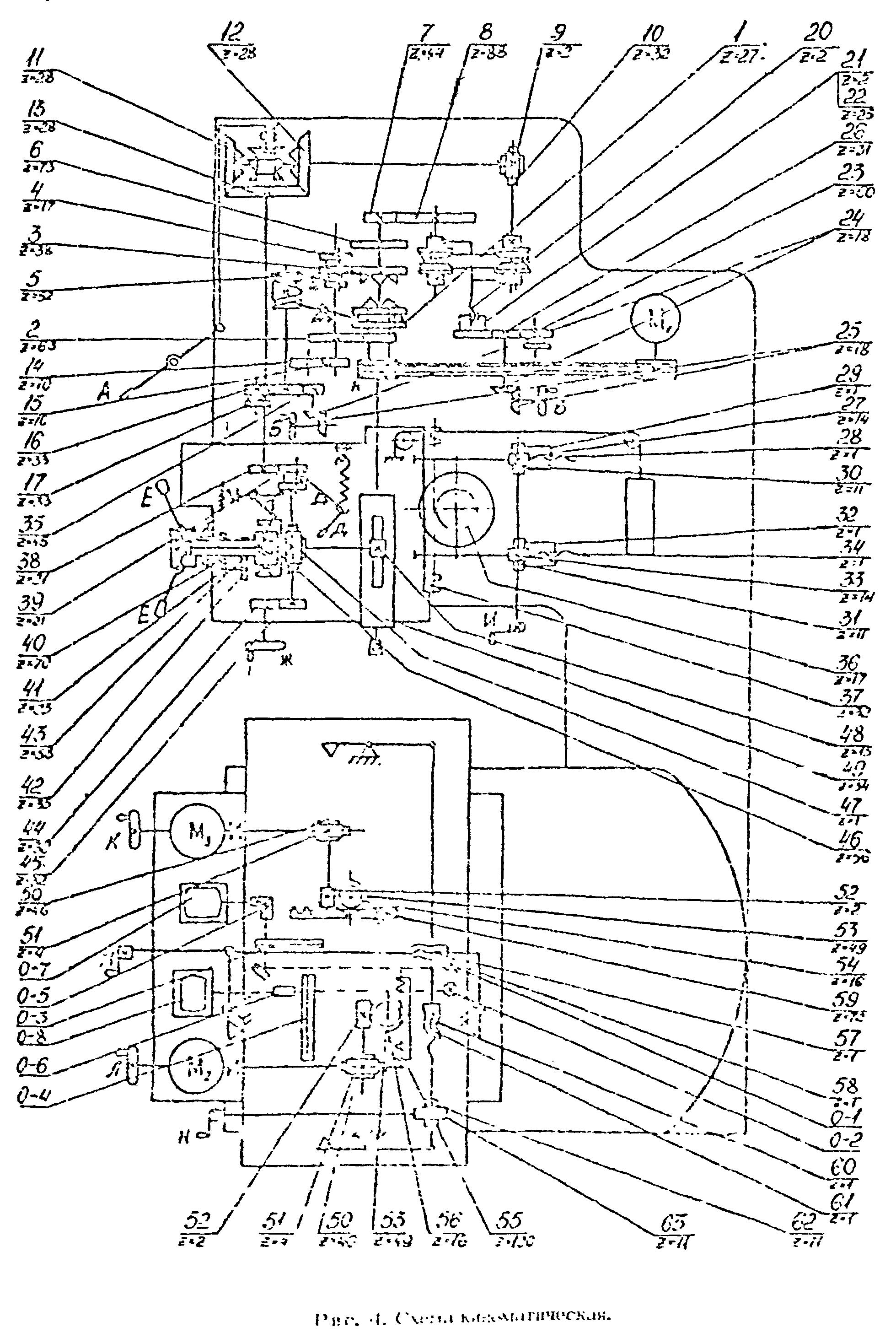 Кінематична схема координатно-расточного верстата 2Е440А. Дивитись у збільшеному масштабі