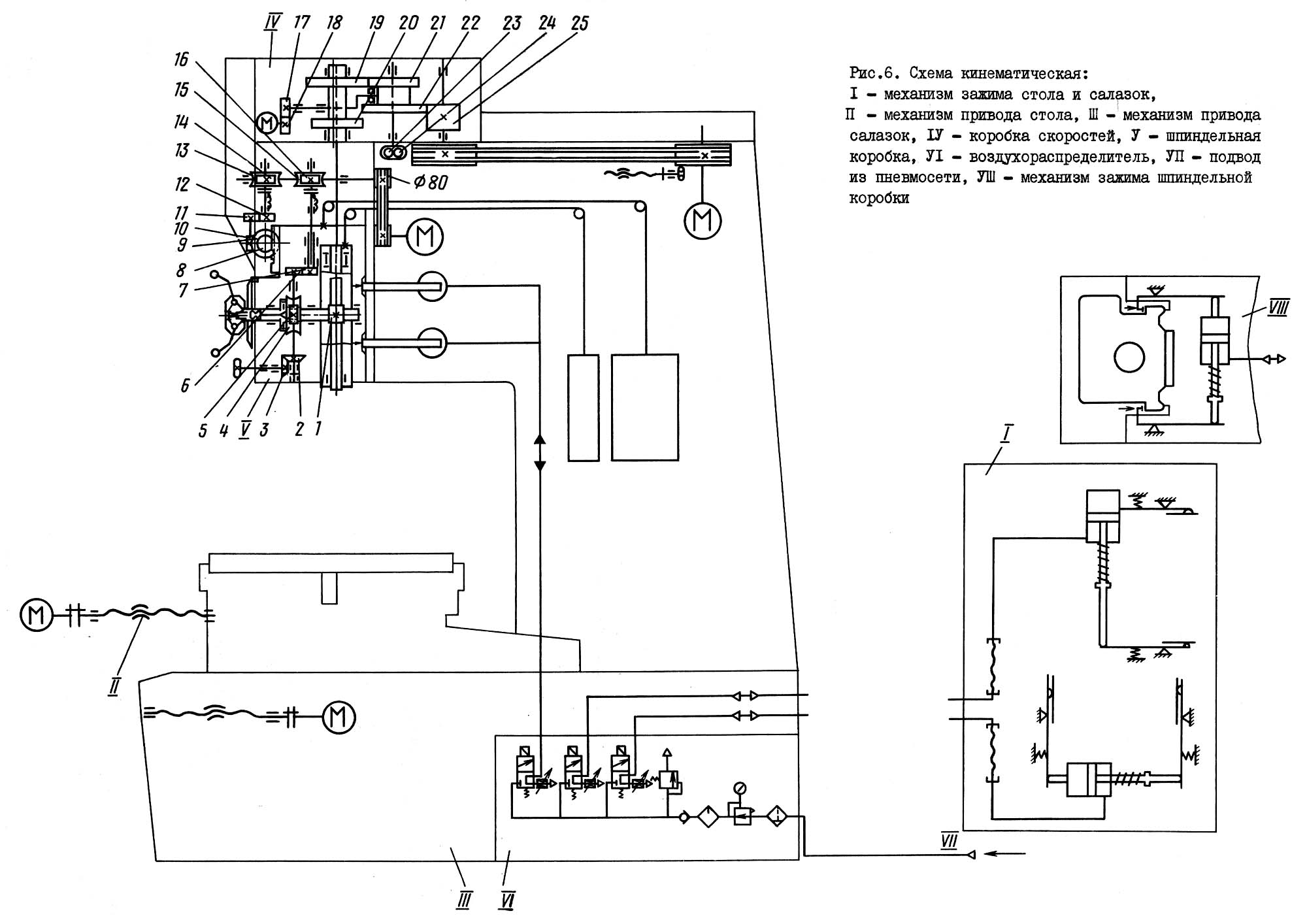 Пневматическая схема координатно-расточного верстата 2е450аф1