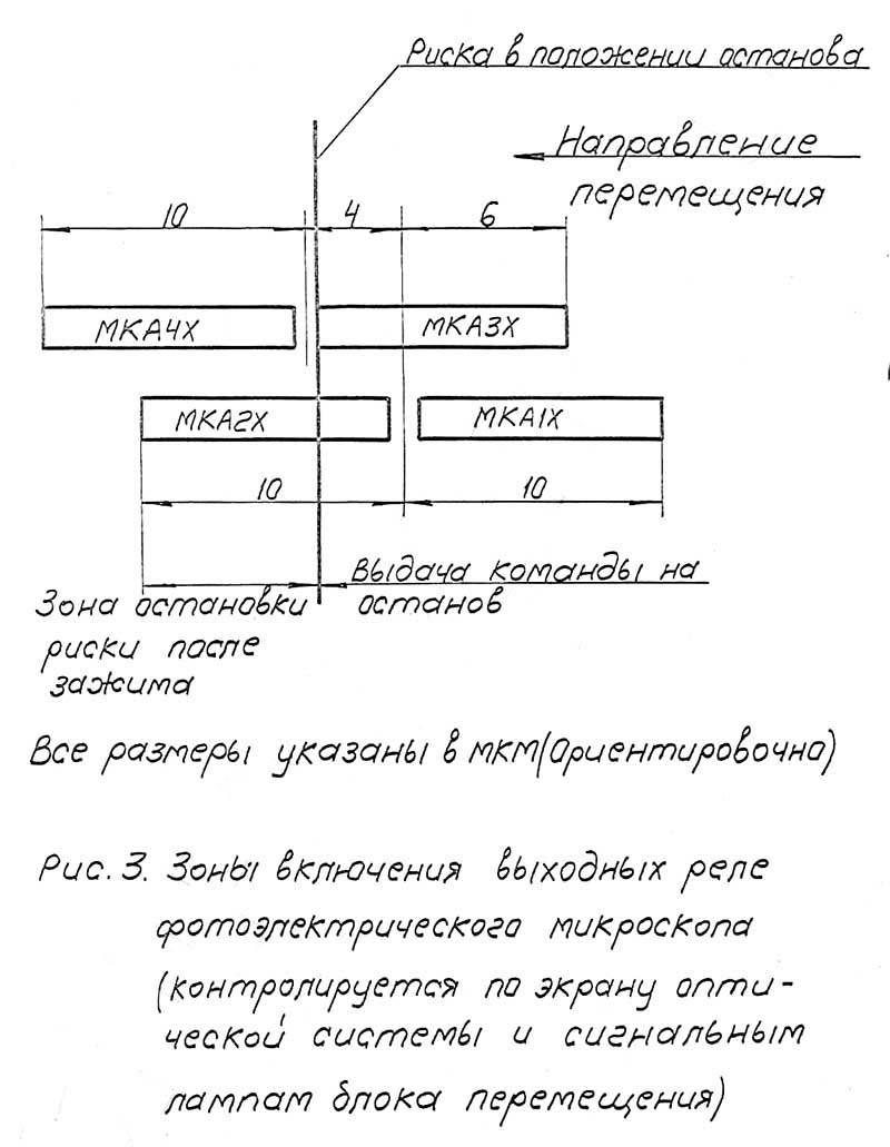 Схема работает следующим образом: після того как установка стола (салазок) по сельсинам закончена (в точке ~0,05 мм до заданной координаты) керування движением производится фотоелектрическим микроскопом.