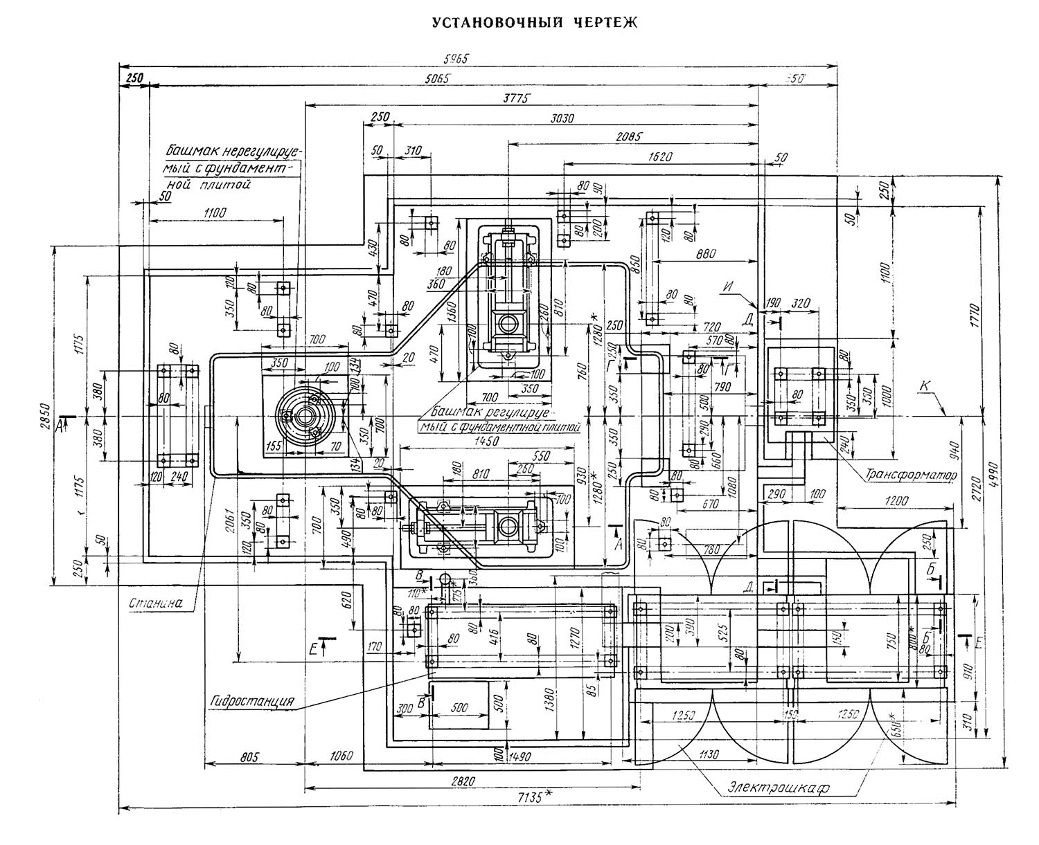 Настановне креслення координатно-розточувального верстата 2Е460. Завантажити у збільшеному масштабі