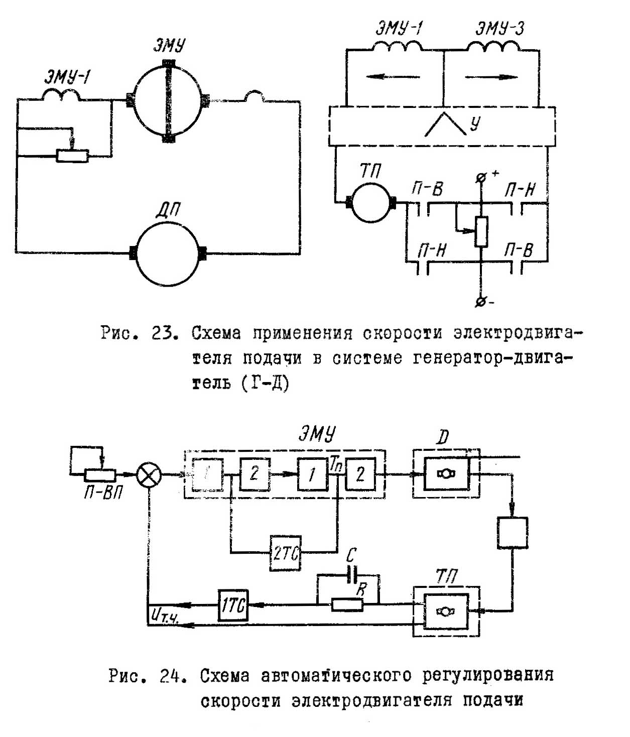 Подача і установочные переміщення органів верстата осуществляются от електродвигуна постоянного тока, скорость обертання которого може изменяться в широких пределах путем изменения напряжения питающего генератора.