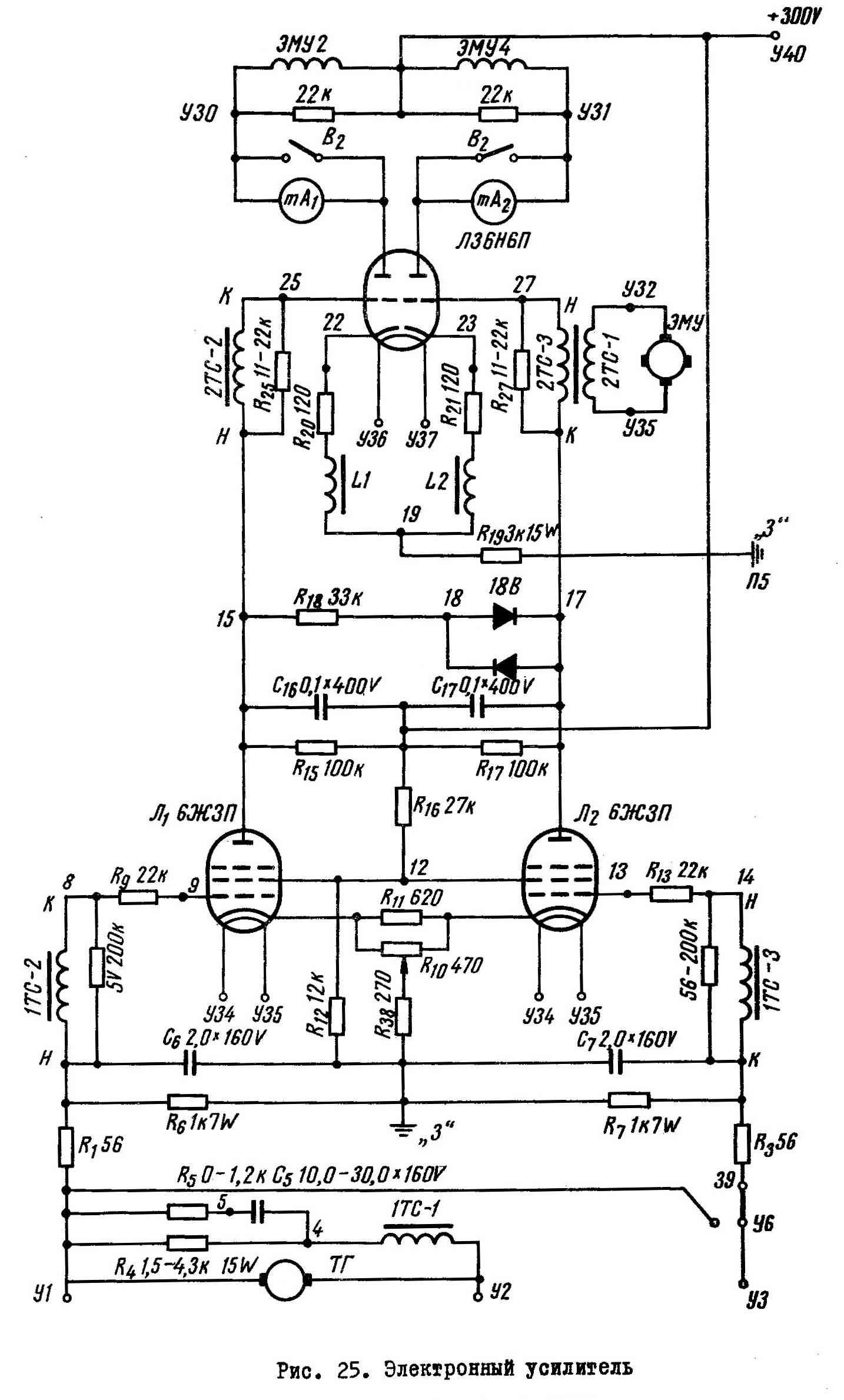 Отыскание неисправности в усилительной частини схеми облегчается наличием на станке измерительных приборов. Включать приборы следует только во время налагодження.