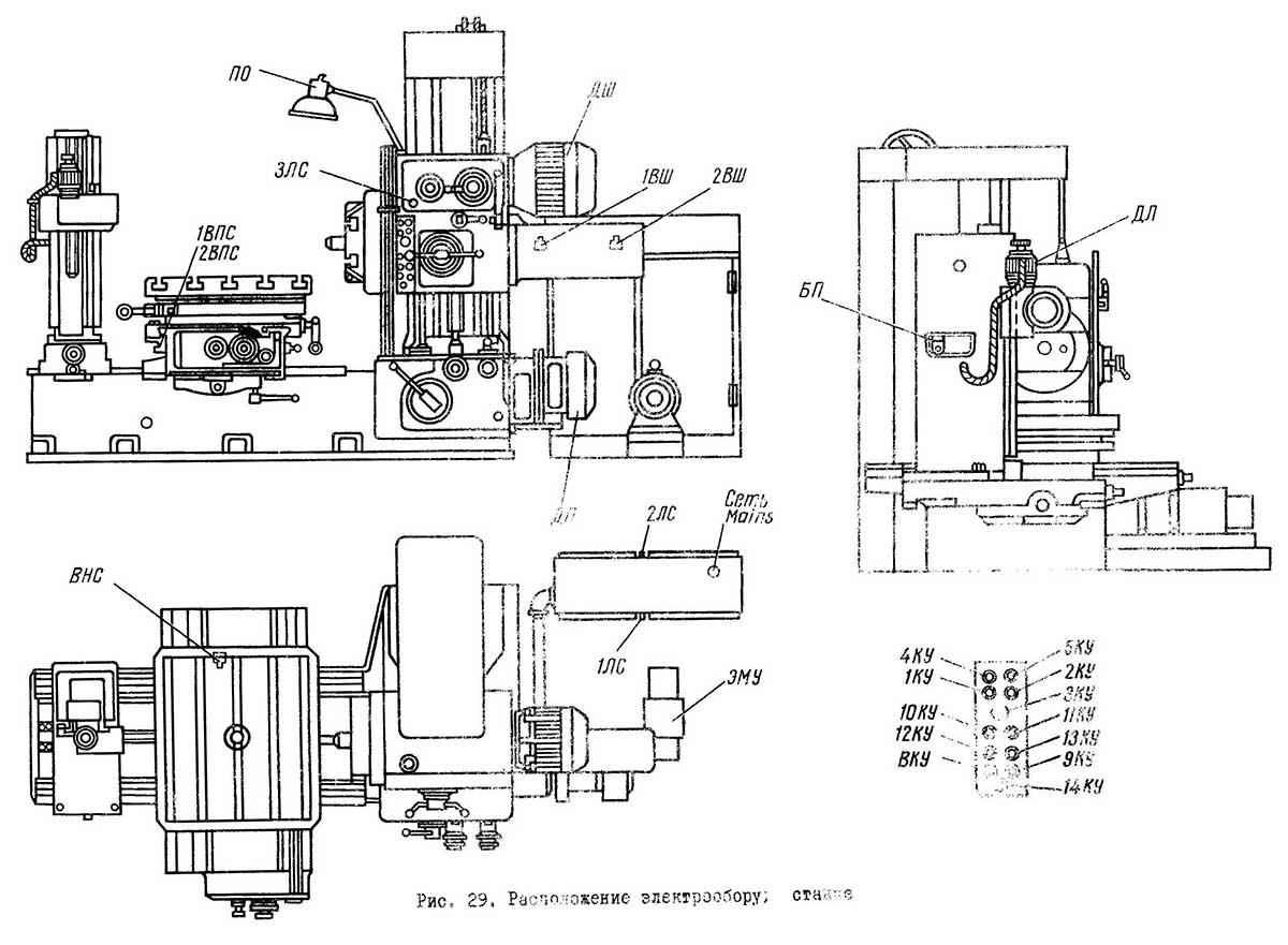 Схема расоложения електроустаткування горизонтально-расточного верстата 2Л614