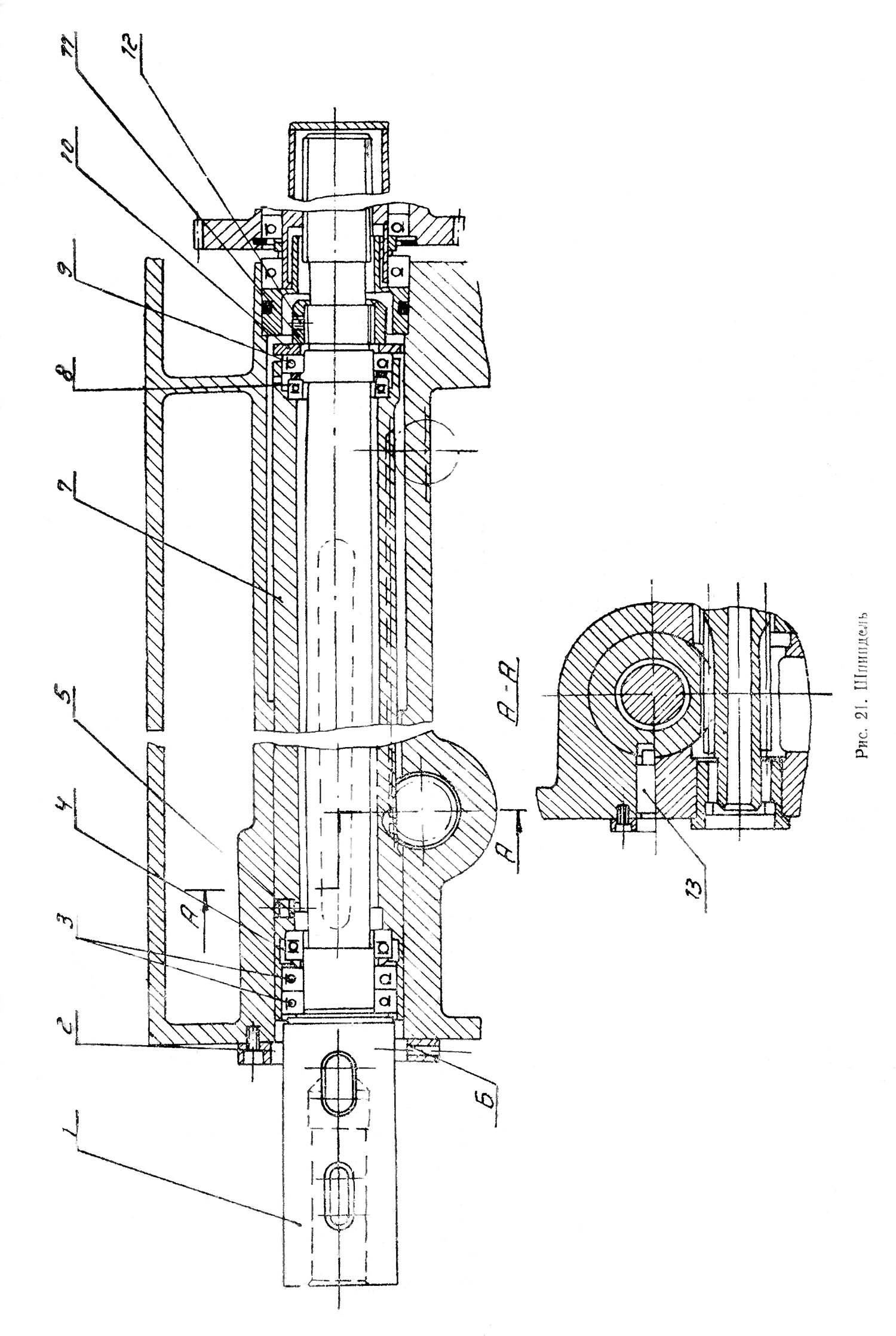 Повышенный осевой люфт шпинделя устраняется подтяжкой гайки 11 (рис. 21).