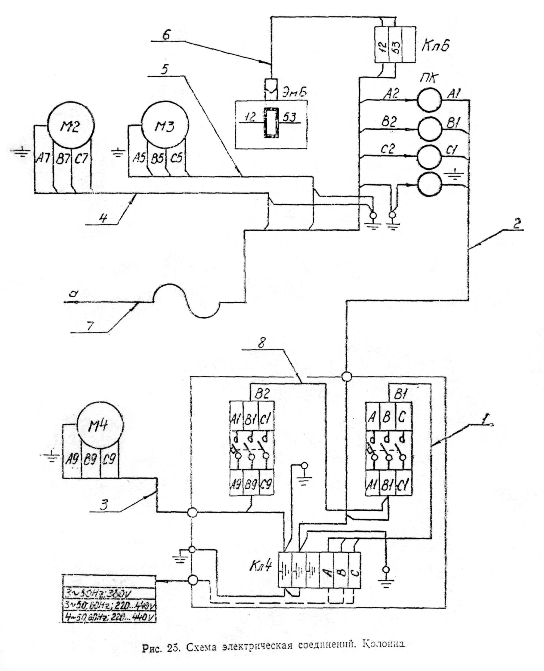 Колонна. Схема електрична з'єднань радиально-сверлильного верстата 2М55