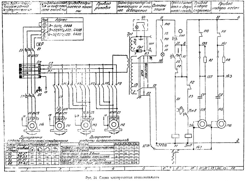 Сверлильная головка. Схема електрична з'єднань радиально-сверлильного верстата 2М55