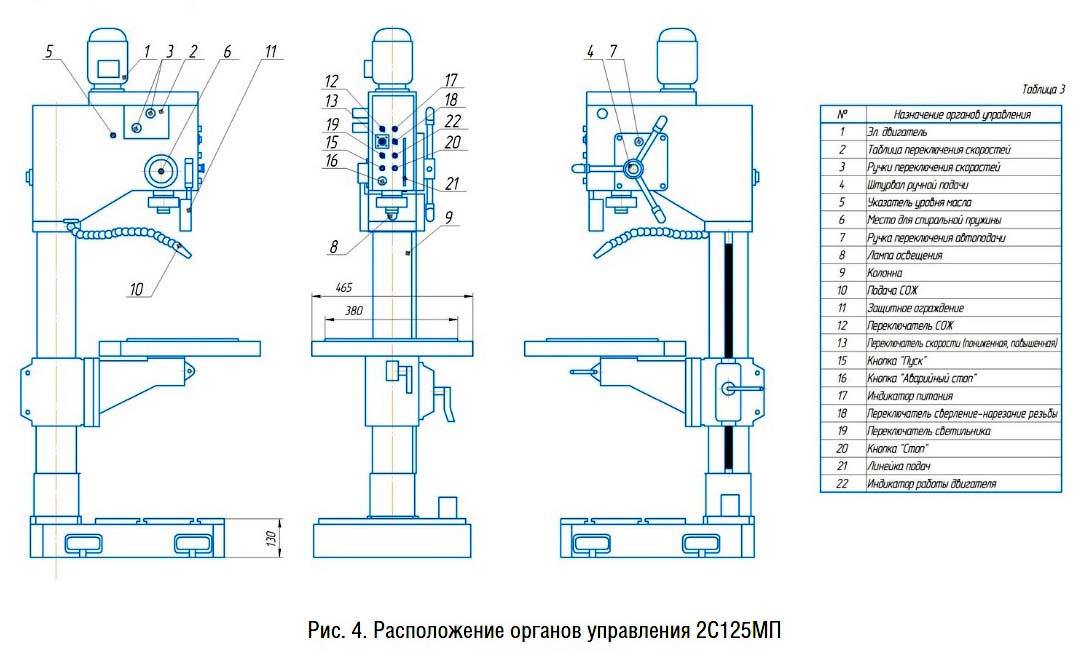 Розташування органів керування свердлильним верстатом 2С125МП. Завантажити у збільшеному масштабі
