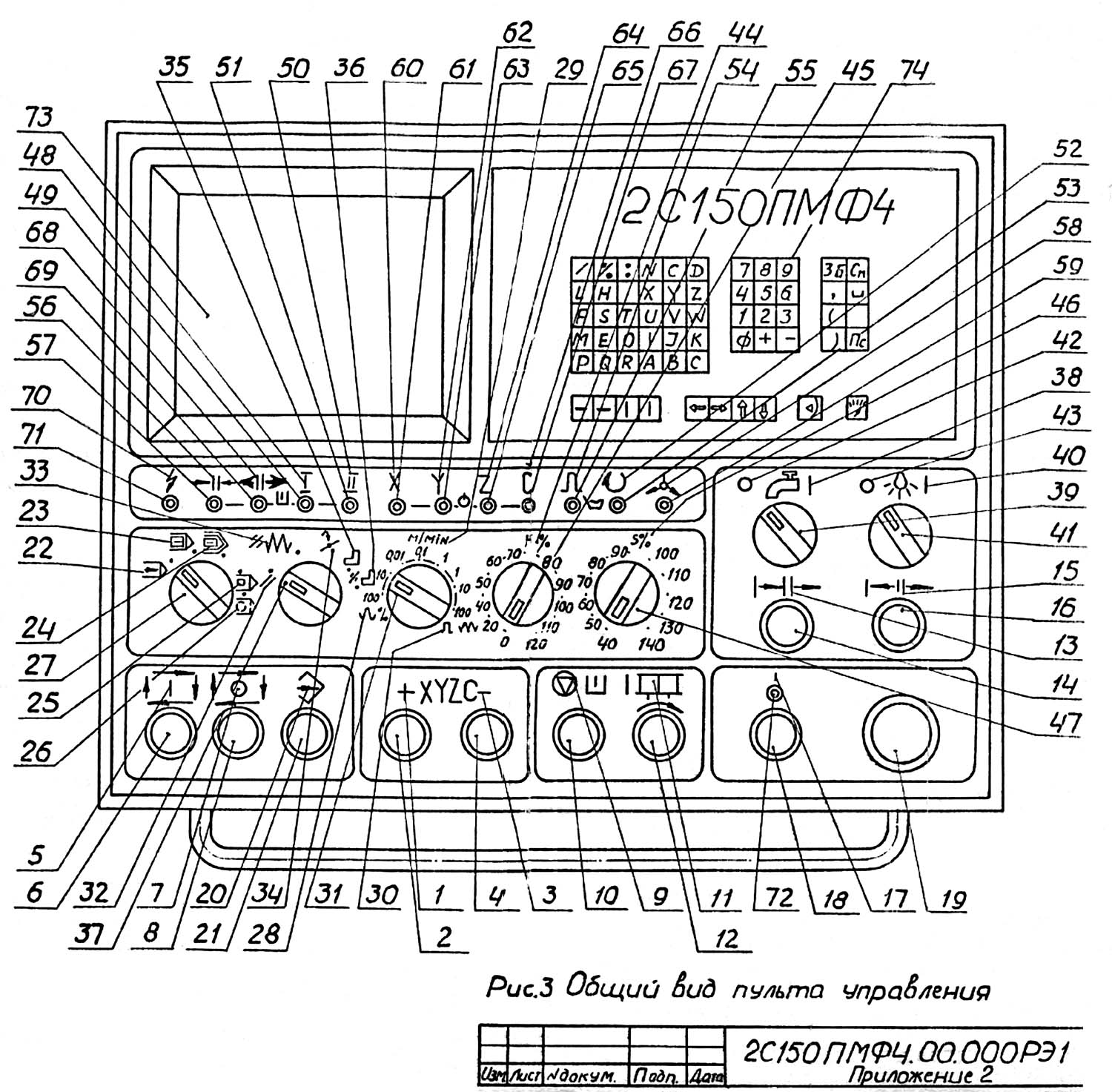 Список органів керування і индикации на пульті керування сверлильно фрезерным вертикальным верстатом 2с150пмф4