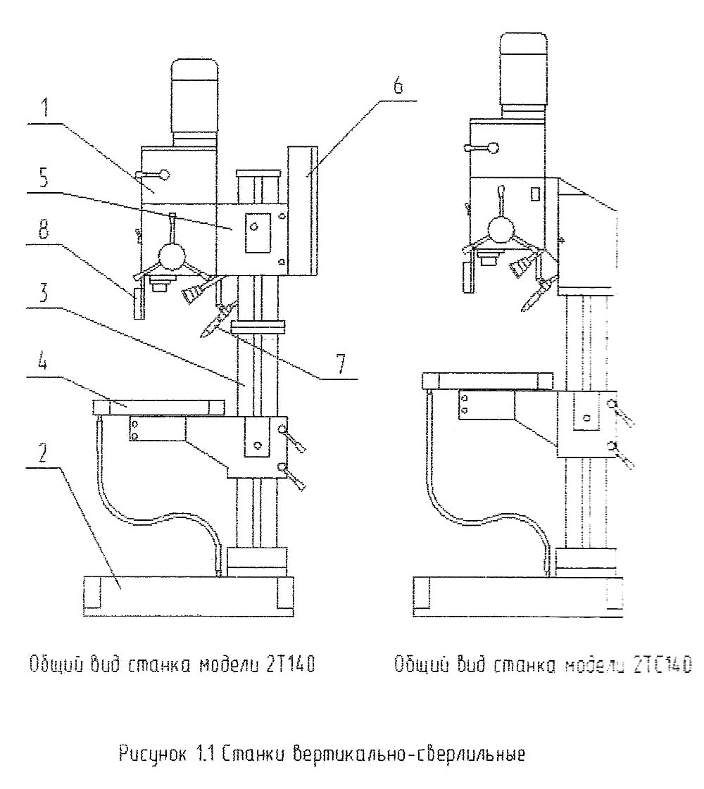 Розташування основних вузлів вертикально-свердлувального верстата 2т140