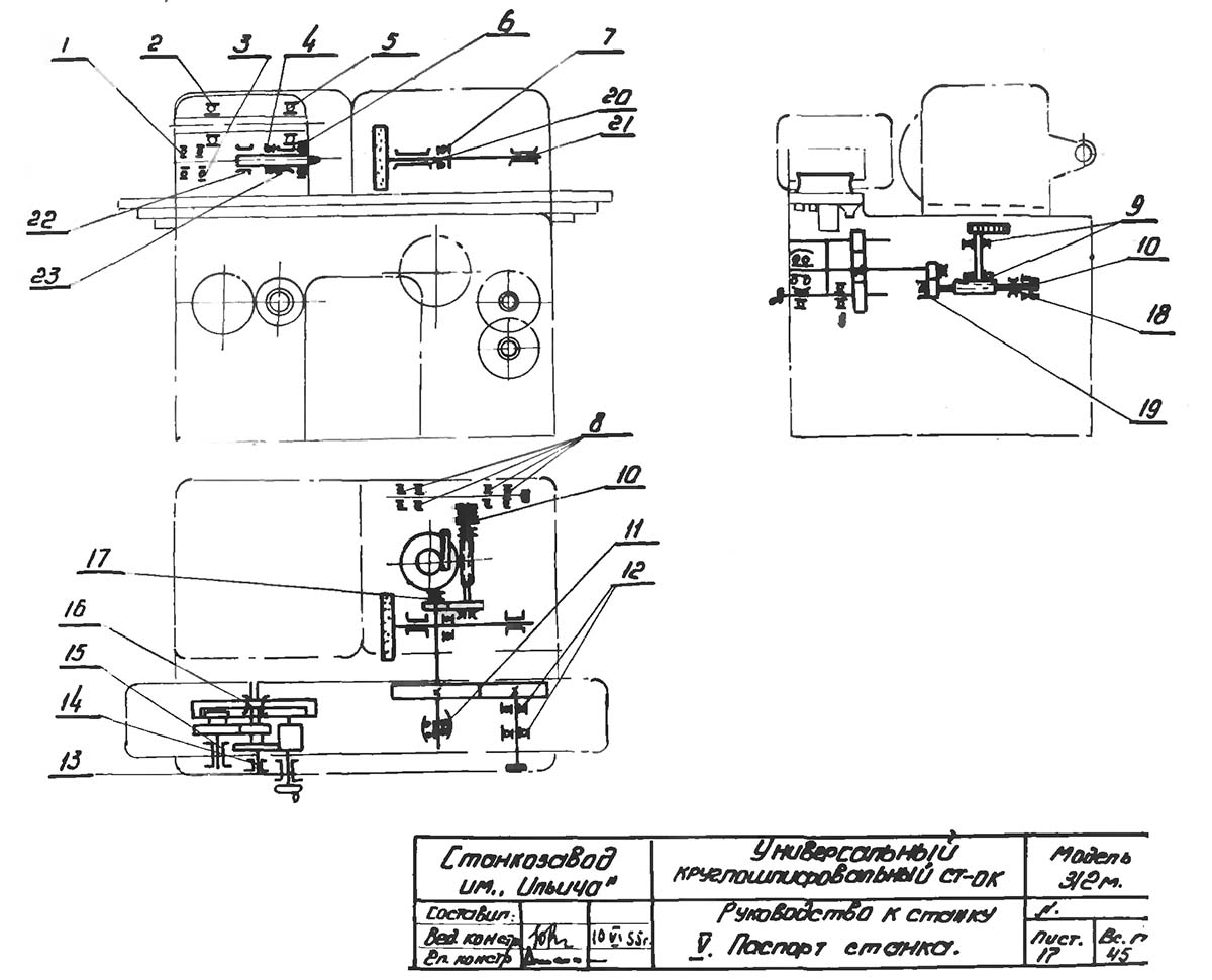 1. Схема кінематична круглошліфувального верстата 312м. Дивитись у збільшеному масштабі