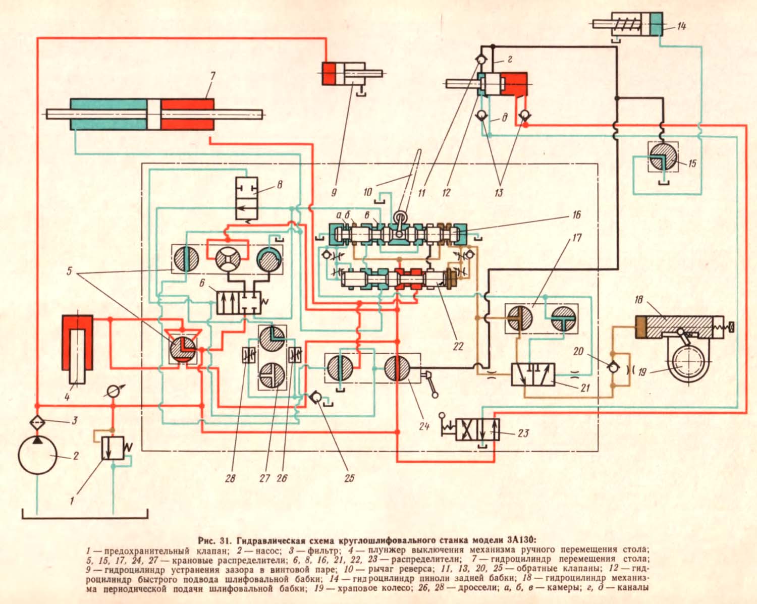 1. Гідравлічна схема круглошліфувального верстата 3131. Дивитись у збільшеному масштабі
