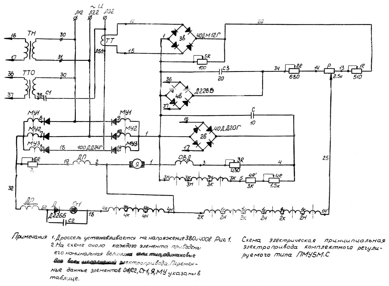 Схема електрична принципова приводів ПМУ 5М З наведена малюнку 1.