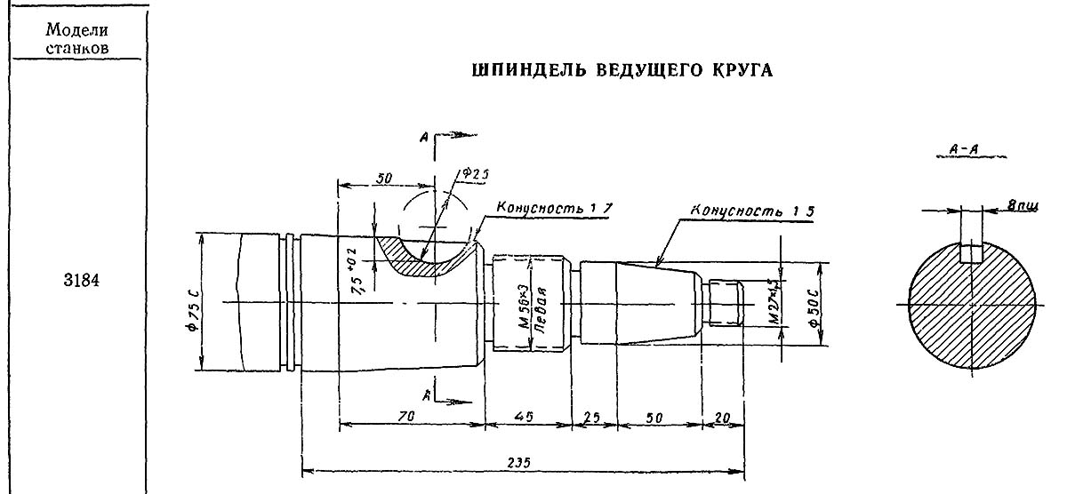 Шпиндель ведучого кола безцентрового верстата 3184. Дивитись у збільшеному масштабі