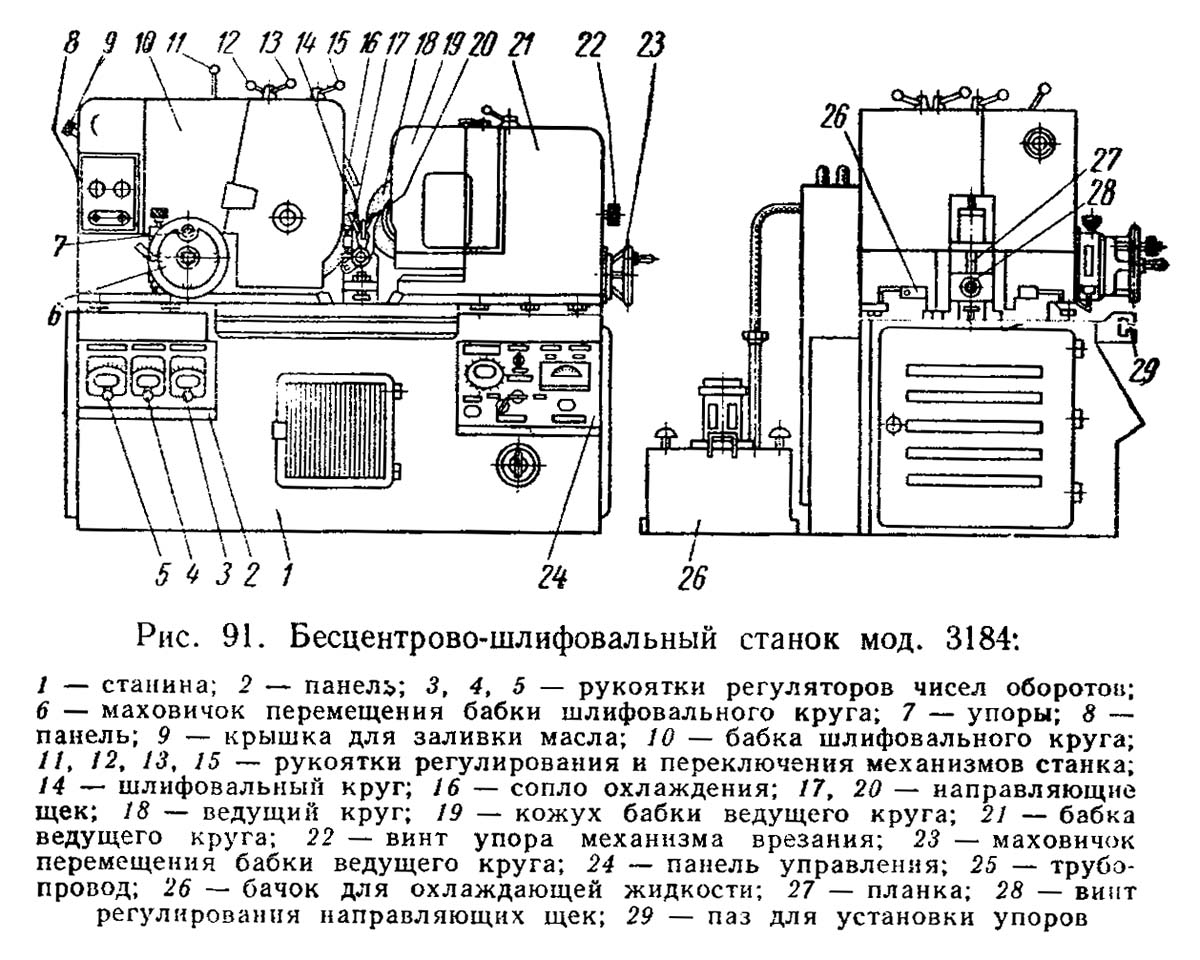 Розташування основних вузлів безцентрово-шліфувального верстата 3184