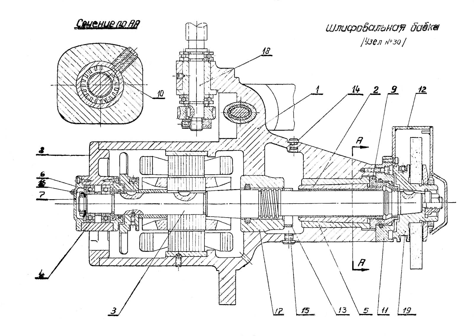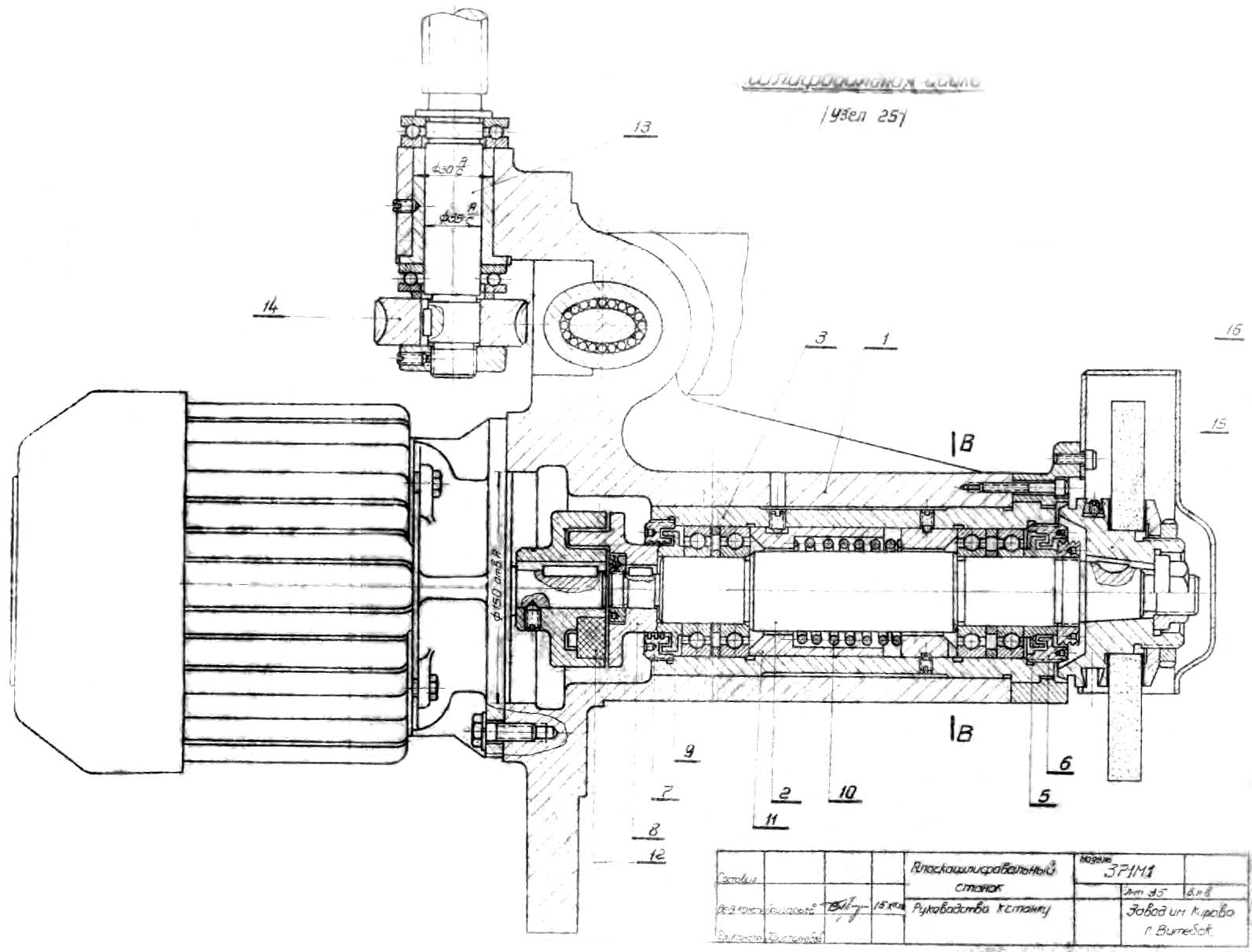 1. Шліфувальна бабка плоскошліфувального верстата 371м-1. Дивитись у збільшеному масштабі