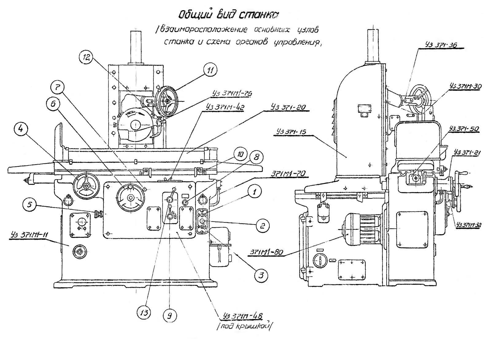 Розташування органів керування плоскошліфувальним верстатом 371М-1