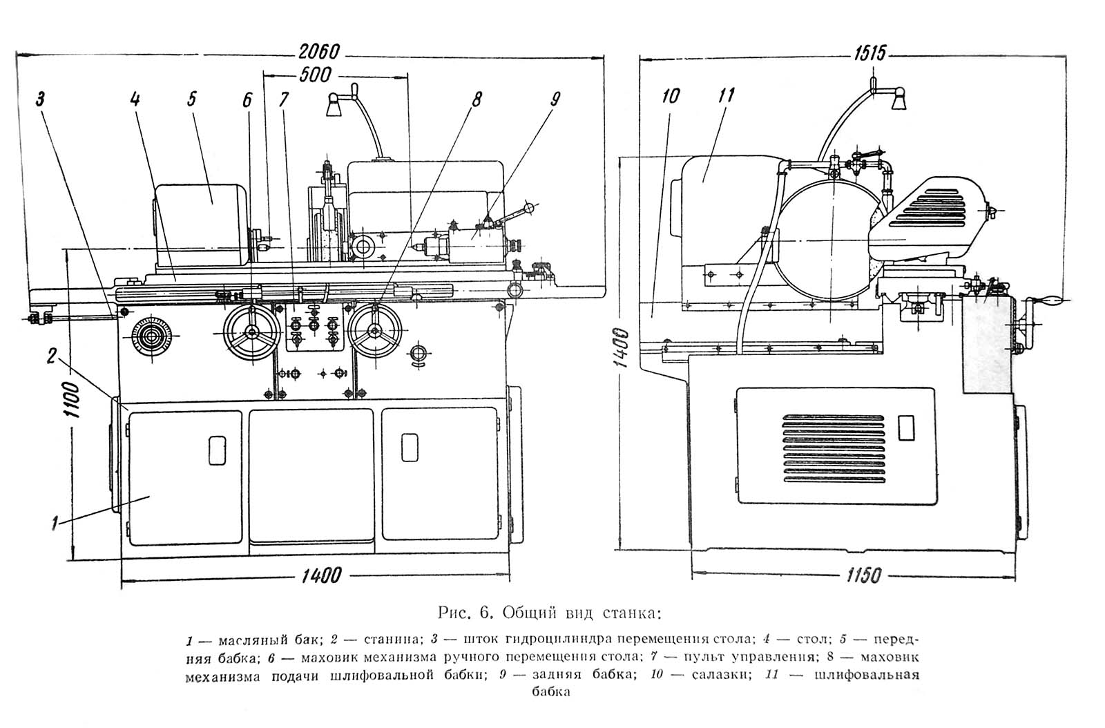 Розташування складових частинин круглошліфувального верстата 3А153У. Дивитись у збільшеному масштабі
