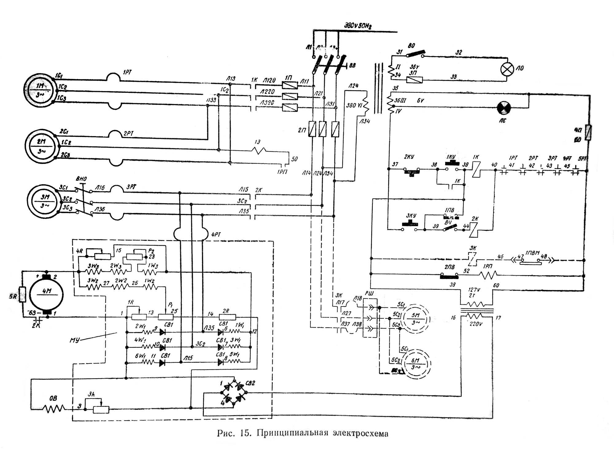 Електрична схема круглошлифовального верстата 3А153У. Дивитись у збільшеному масштабі