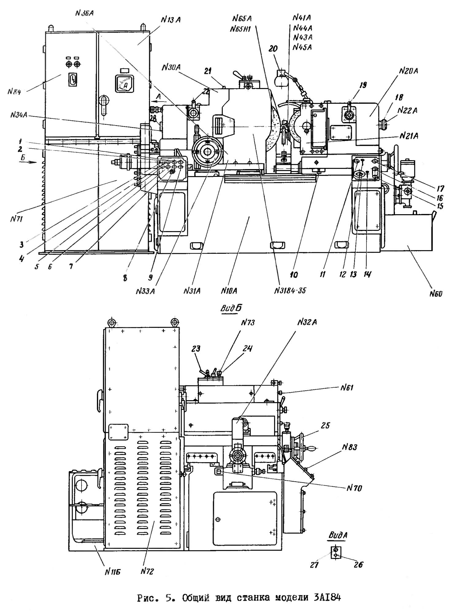 Настановне креслення круглошлифовального верстата 3А184. Дивитись у збільшеному масштабі