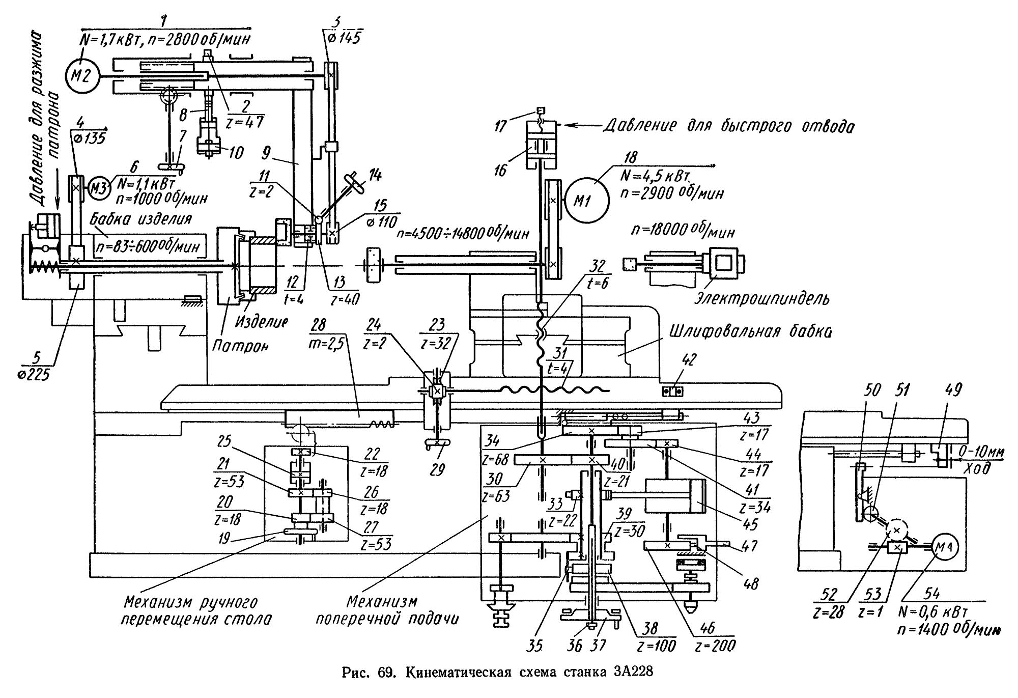 Кінематична схема внутрішньошліфувального верстата 3а228