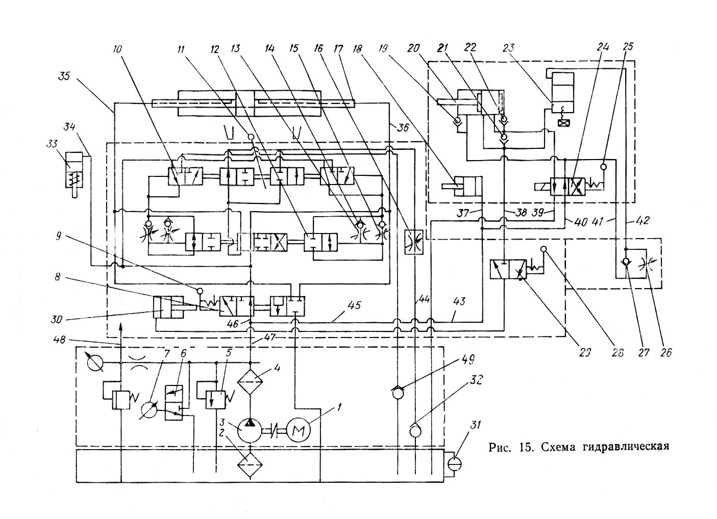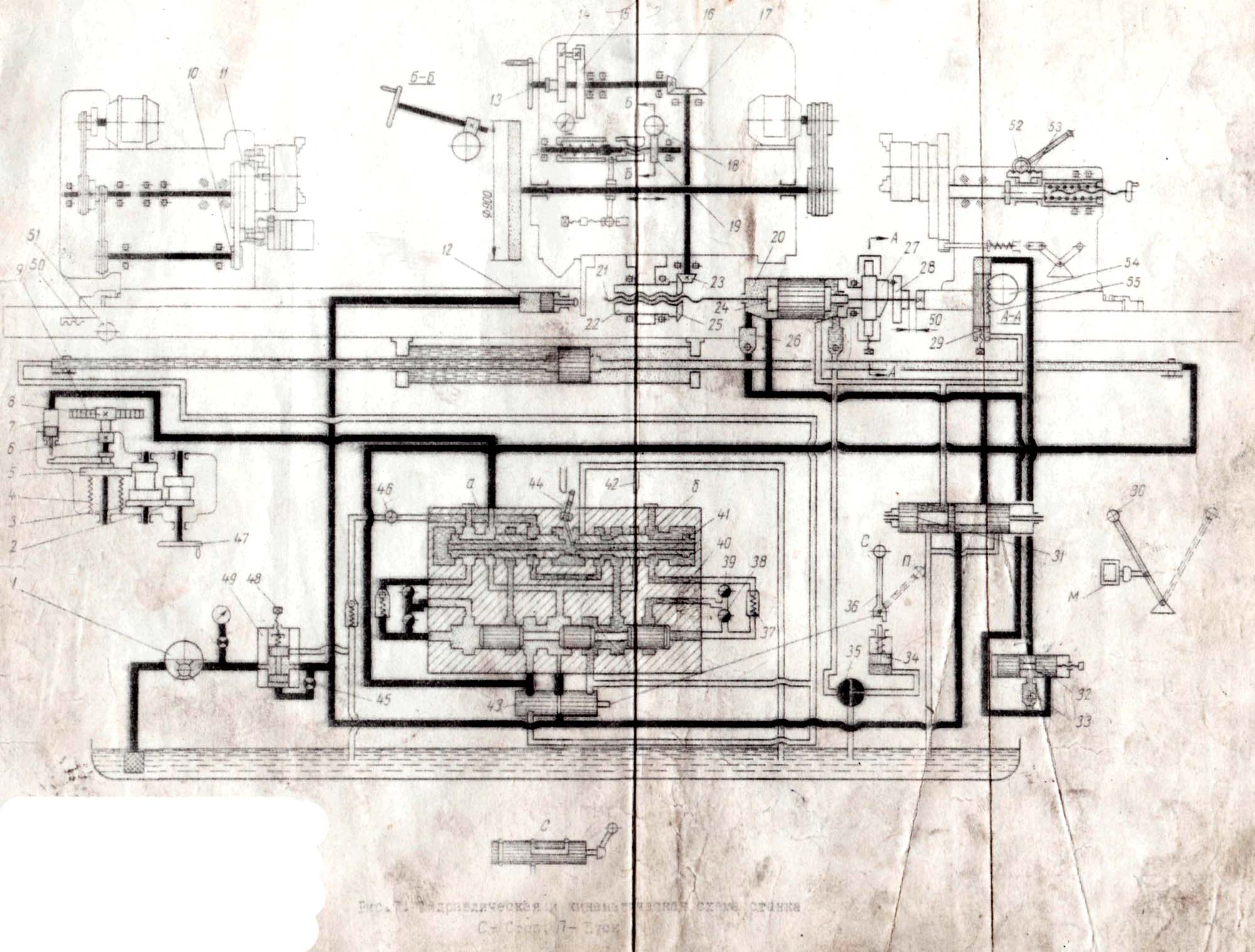Гідравлічна схема круглошлифовального верстата 3А423. Дивитись у збільшеному масштабі