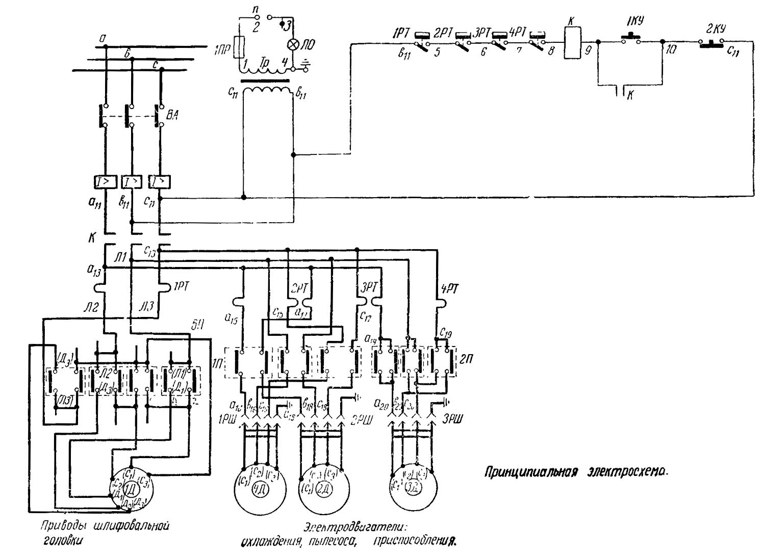 Електрична схема заточного верстата 3А64Д