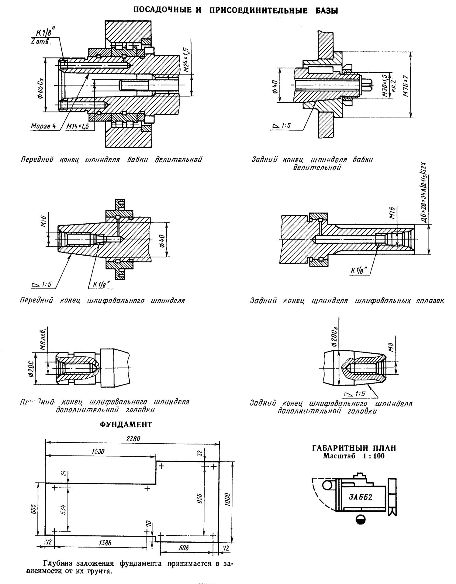 Основні розміри та посадкові місця заточувального верстата 3А662