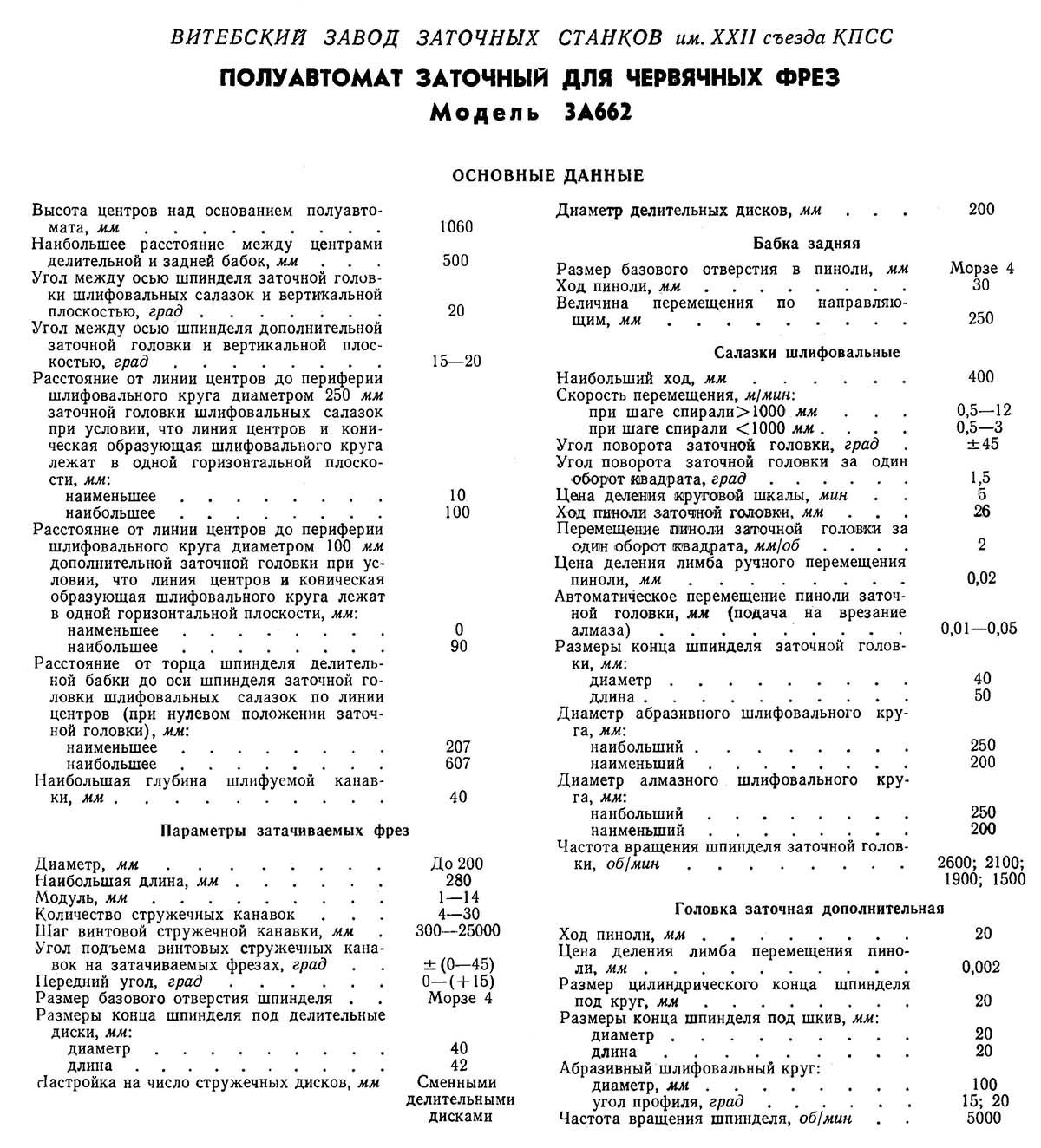 Заточний напівавтомат 3А662 розроблений Вітебським СКБ ЗШ та ЗС (конструктор В. О. Сітов).