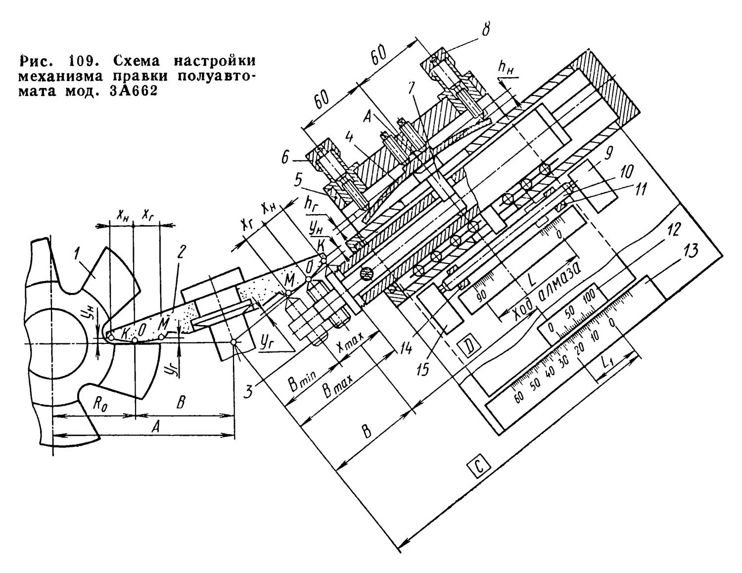 Схема налаштування механізма правки верстата 3А662. Скачать в увеличенном масштабе