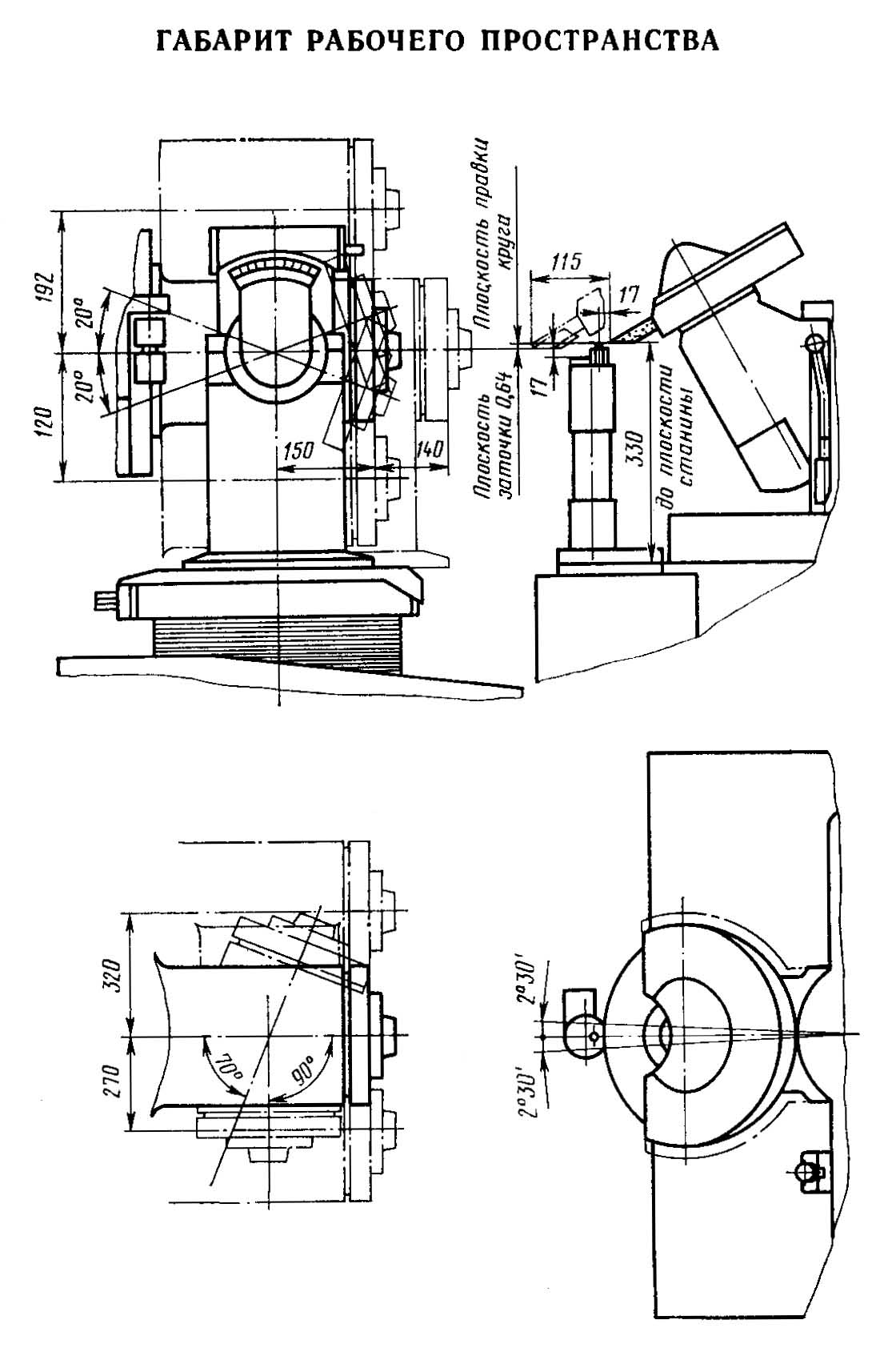 3А666 Габаритні розміри робочого простору заточувального верстата для зуборізних головок