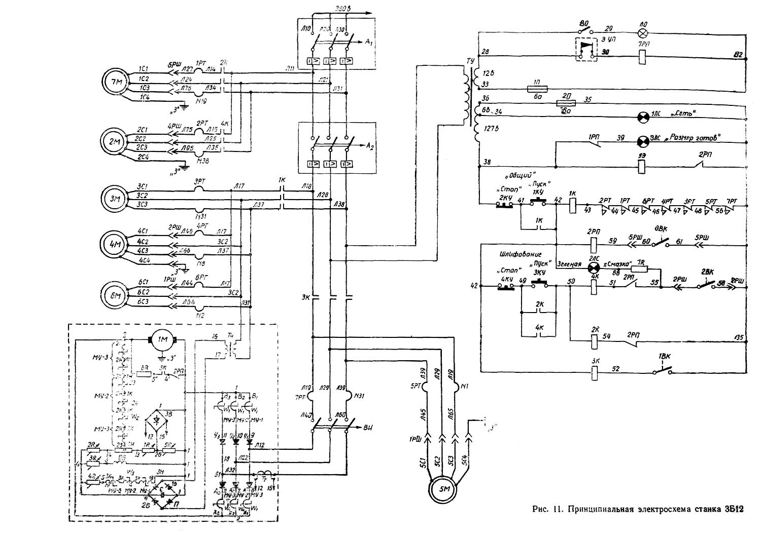 1. Схема електрична круглошлифовального верстата 3Б12. Дивитись у збільшеному масштабі