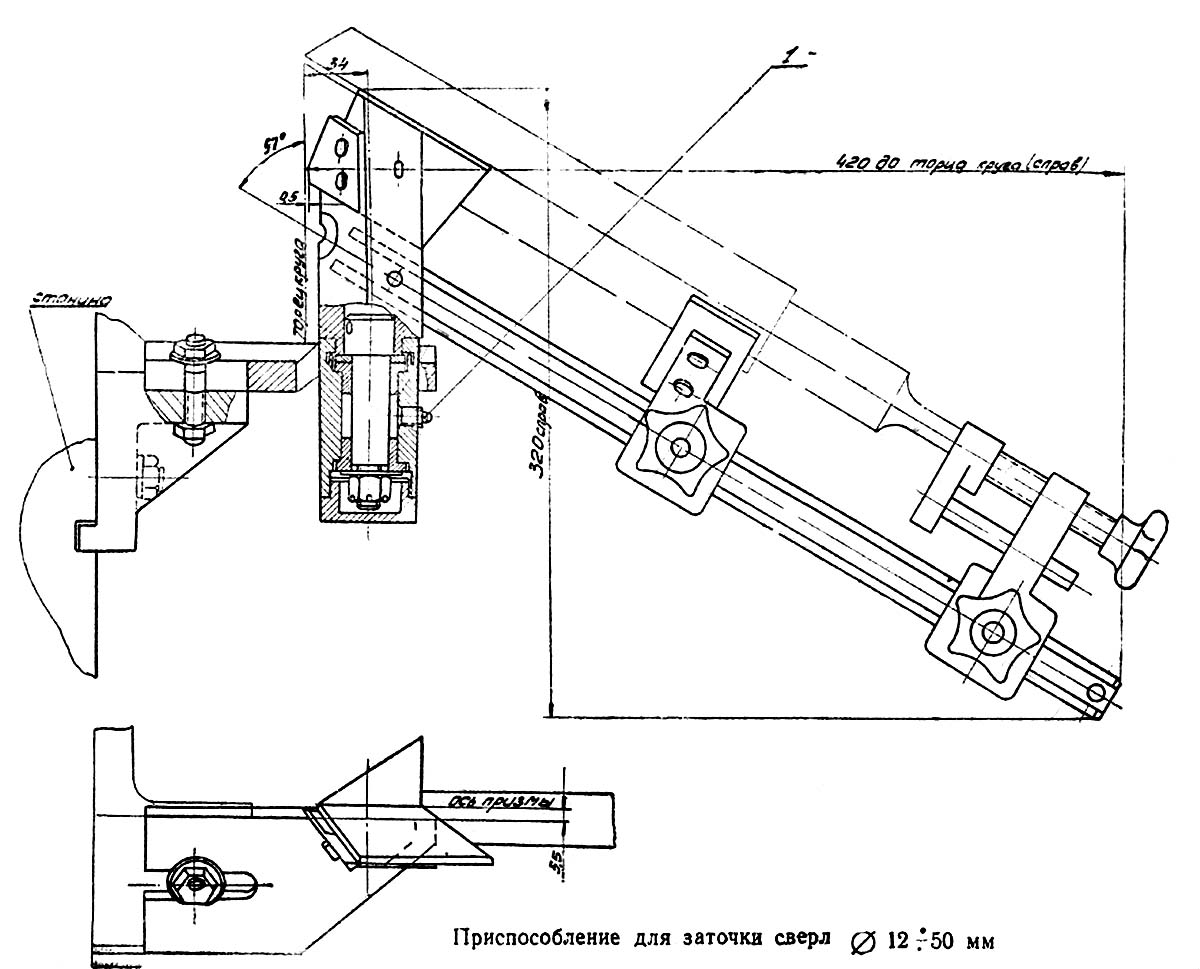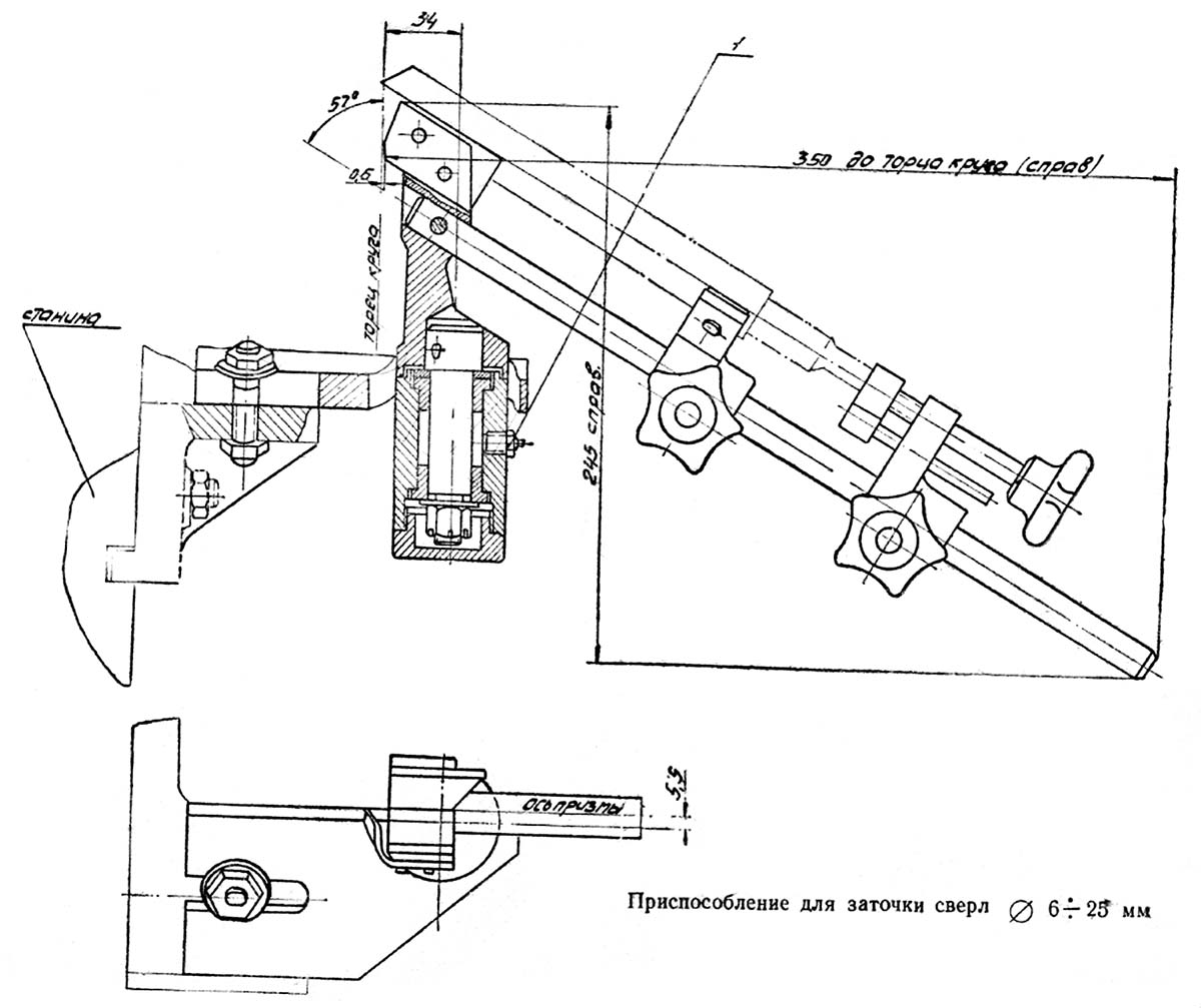 б) заточування свердел діаметром від Ø 6 до 25 мм та від Ø 12 до 50 мм;