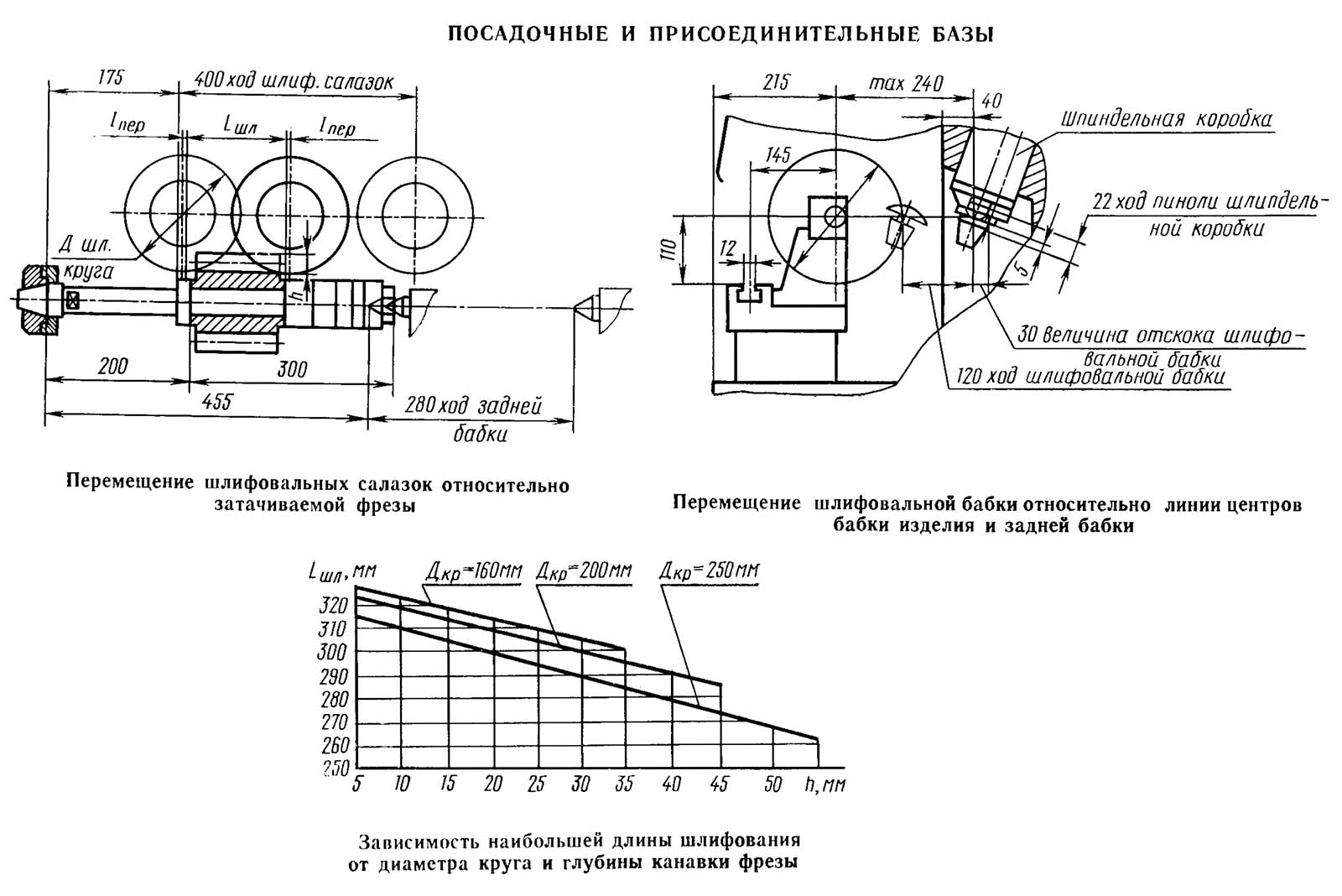 Основні розміри та посадкові місця заточувального верстата 3Б662ВФ2