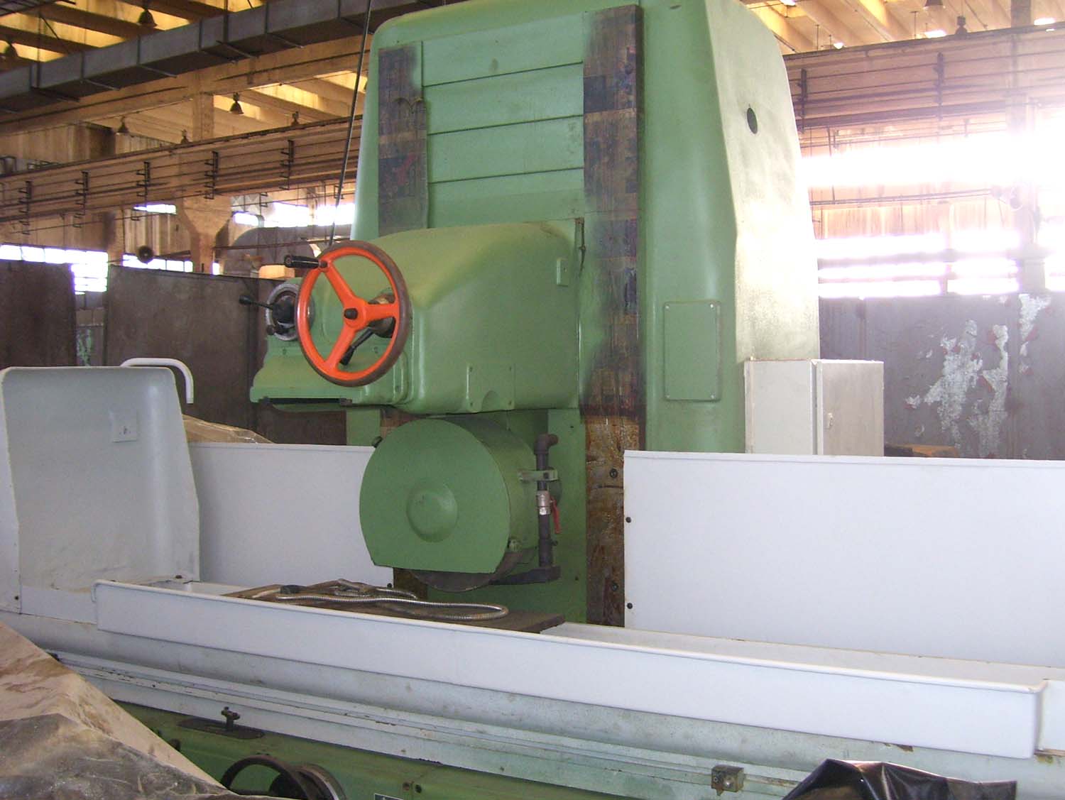 Стіл з оброблюваним виробом здійснює зворотно-поступальний рух напрямними станини. На тумбі, відлитій разом зі станиною, кріпиться колонка, по вертикальним напрямним якої переміщається каретка, що має горизонтальні напрямні для поперечного переміщення шліфувальної бабки.