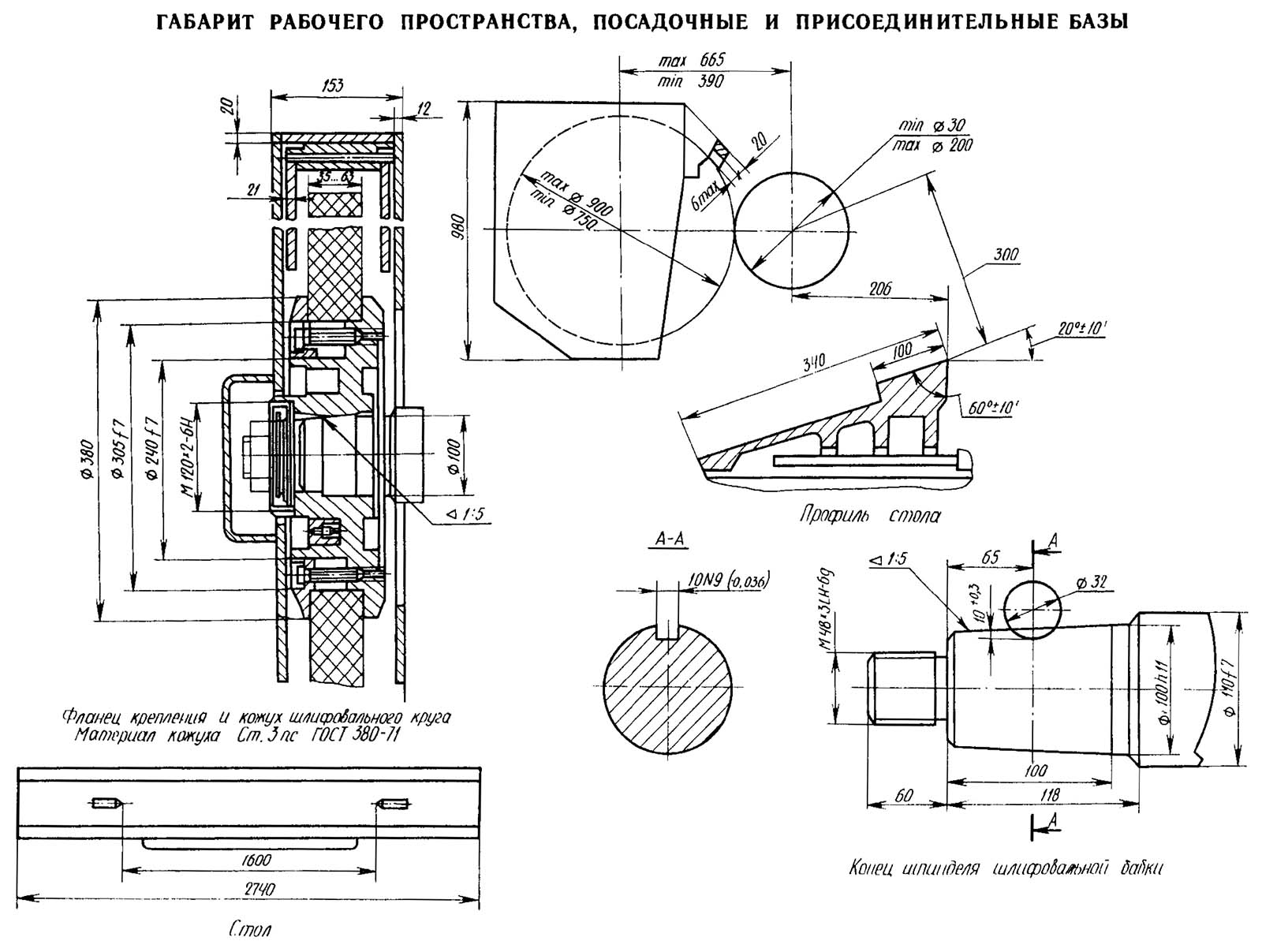 Габарит робочого простору верстата 3Д4230 для перешліфування колінвалів.
