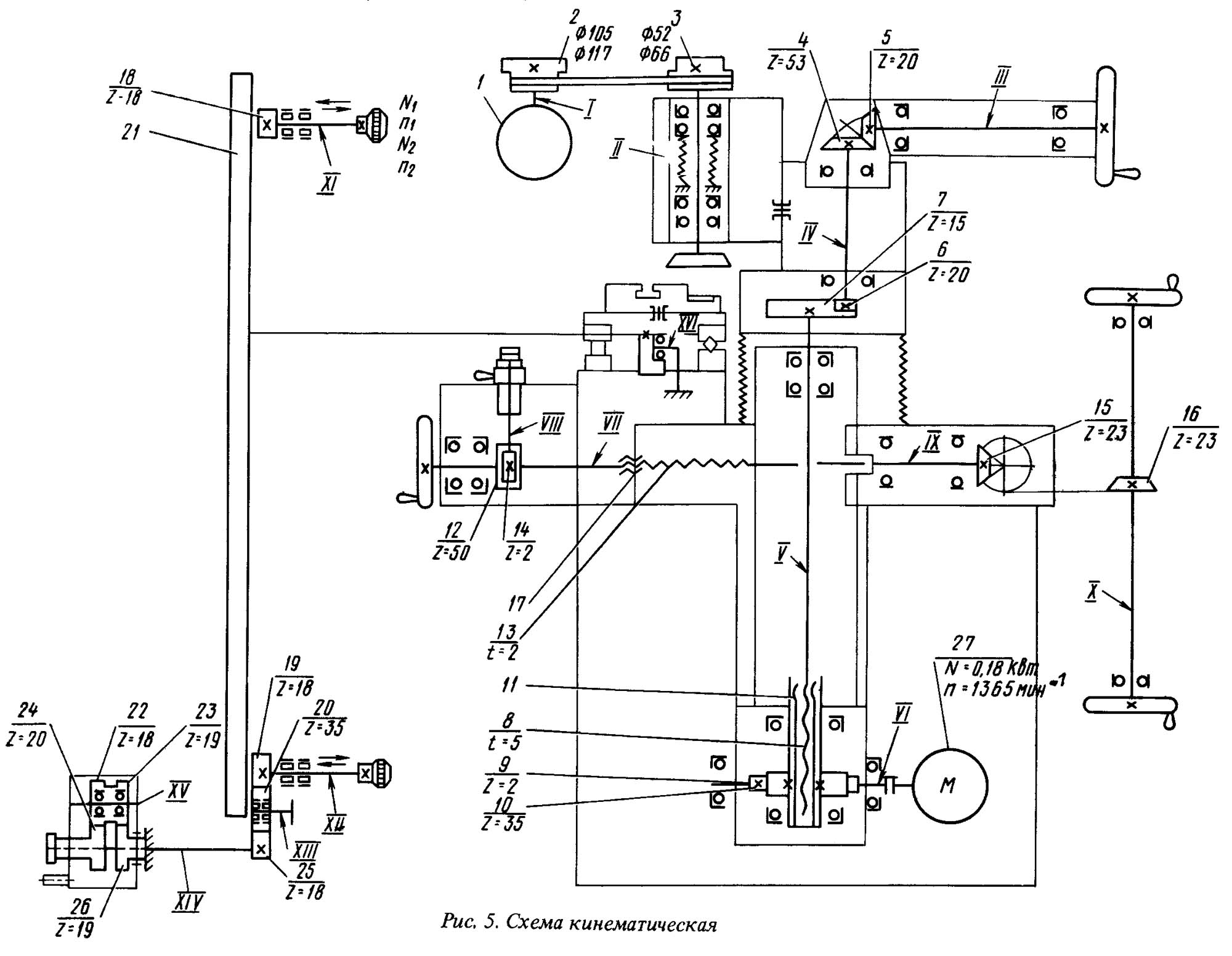Схема кінематична заточного верстата 3Д642Е. Скачать в увеличенном масштабе