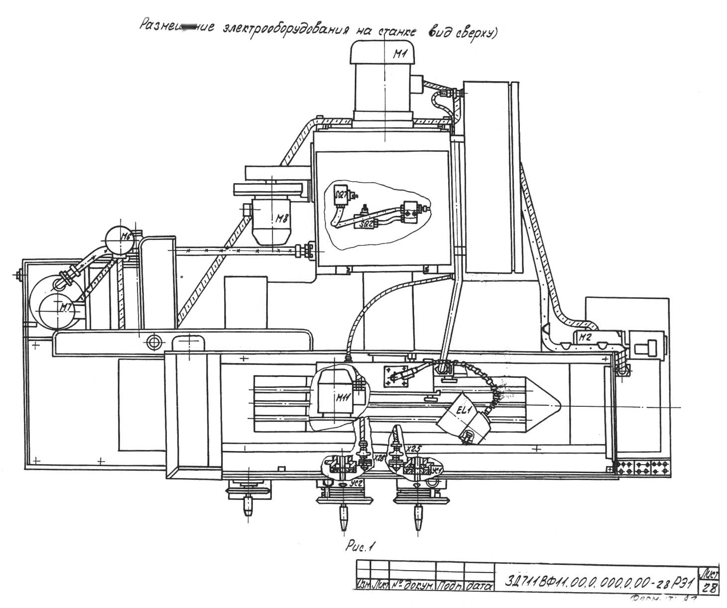 Розміщення електроустаткування плоскошліфувального верстата 3д711вф11