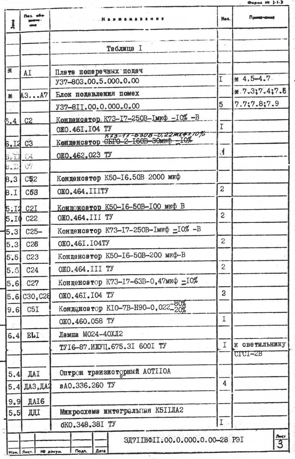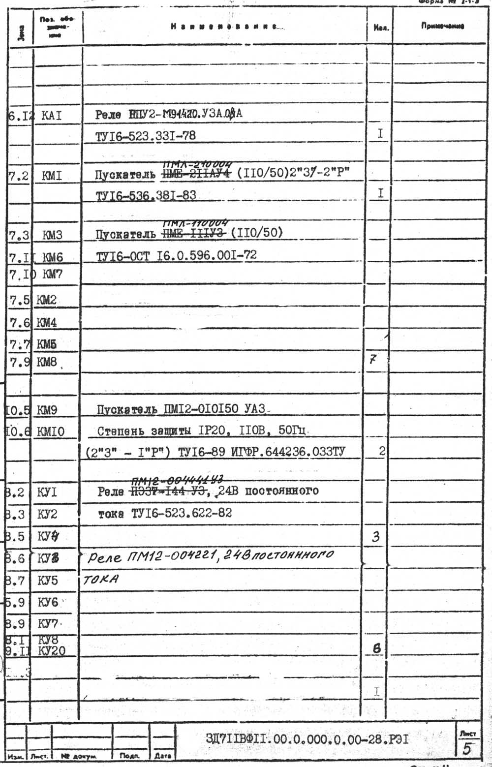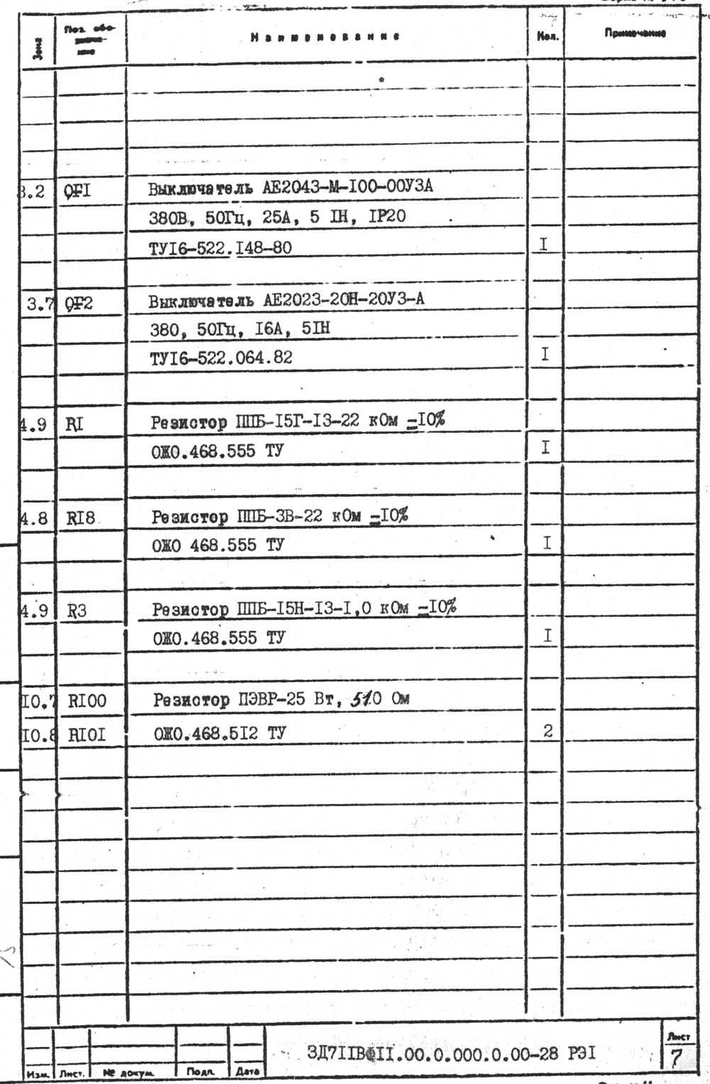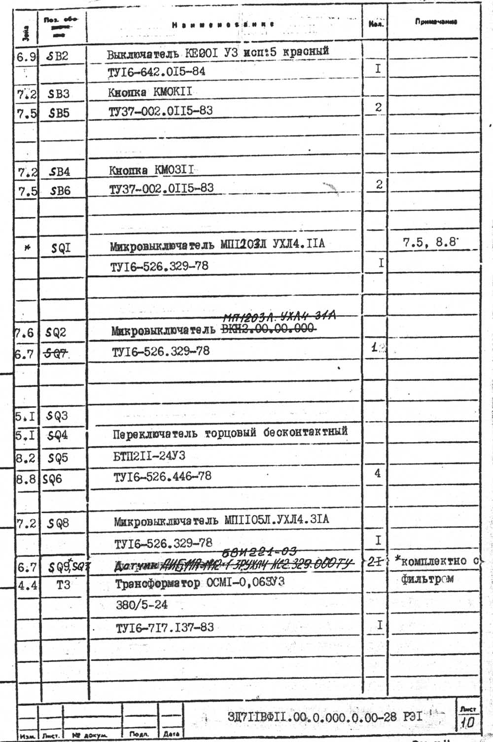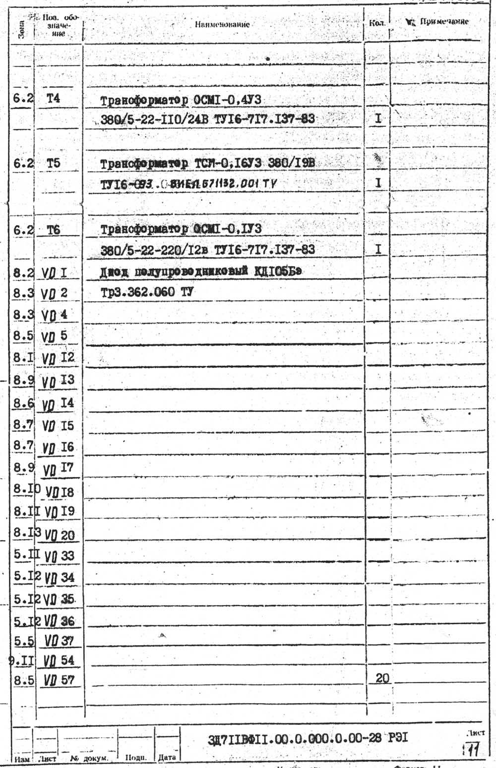 Перелік елементів до електричної схеми плоскошліфувального верстата 3Д711ВФ11