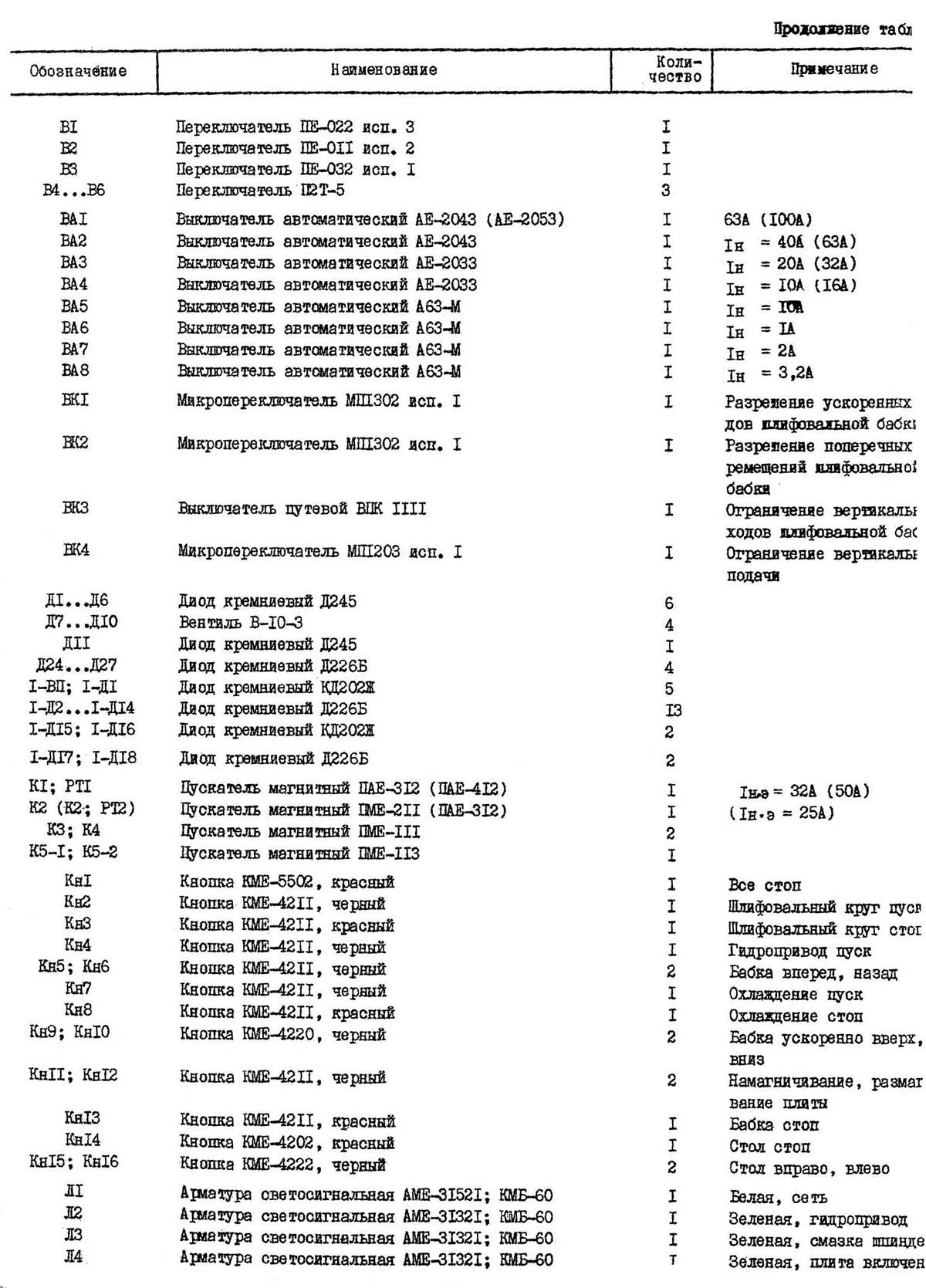 Электрошкаф керування содержит всю аппаратуру керування і защиты, релейную часть схеми і блок керування ходом стола і шлифовальной бабки