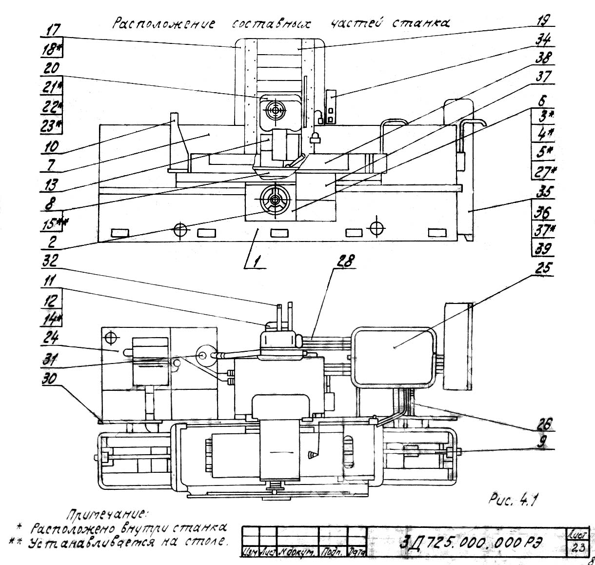 Перелік елементів плоскошліфувального верстата 3Д725. Дивитись у збільшеному масштабі