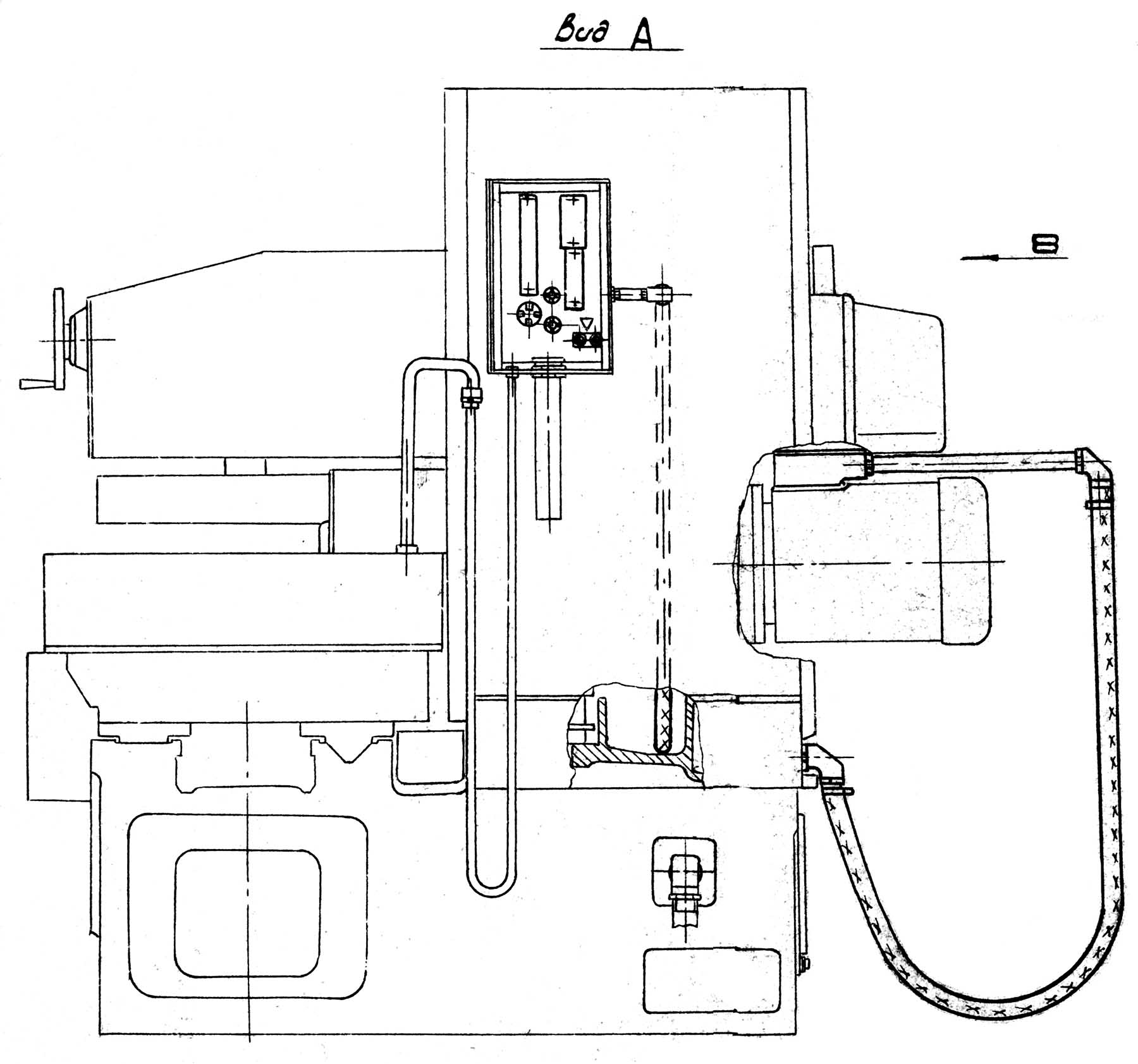 Праворуч на колоні встановлено світильник. Верстат пов'язаний з електрошафою двома трубами 2".