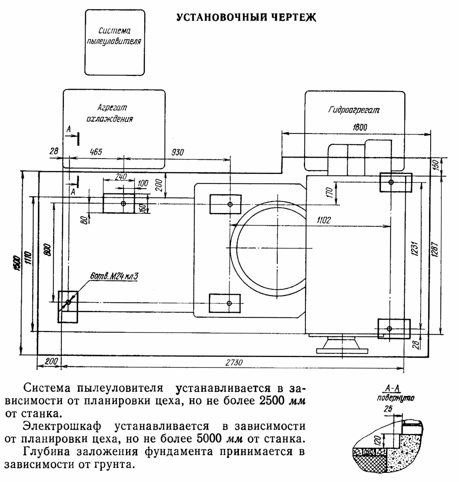 Настановне креслення шліфувального верстата 3Д741. Дивитись у збільшеному масштабі