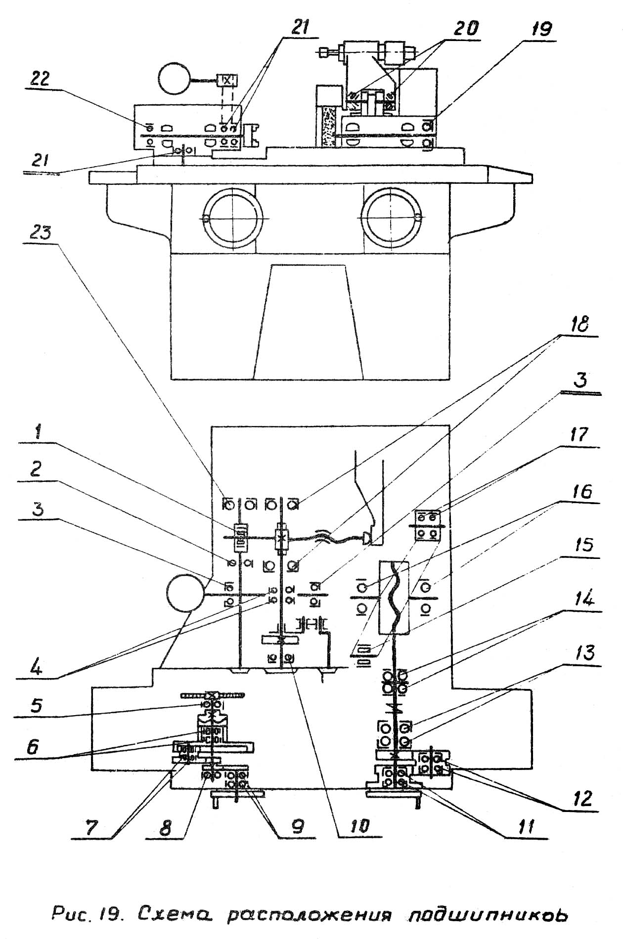 Схема розположення підшибників круглошлифовального верстата 3Е12. Дивитись у збільшеному масштабі