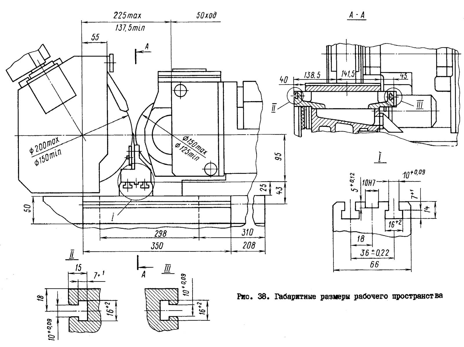 Габарит робочого простору шліфувального верстата 3Е180В. Дивитись у збільшеному масштабі