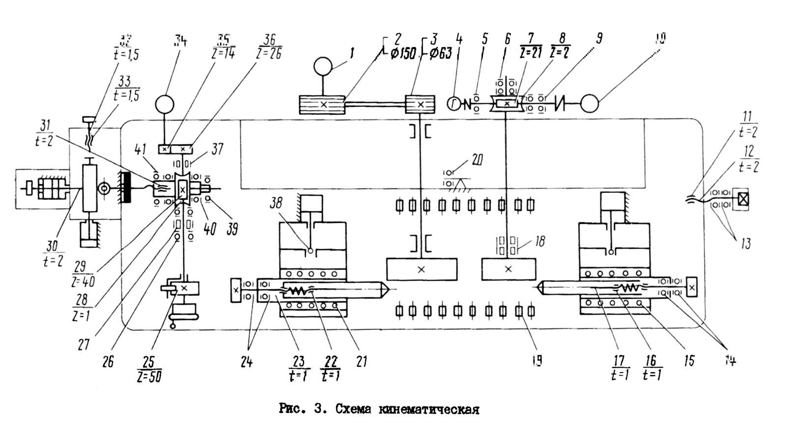 Схема кінематична круглошлифовального верстата 3Е180В. Дивитись у збільшеному масштабі