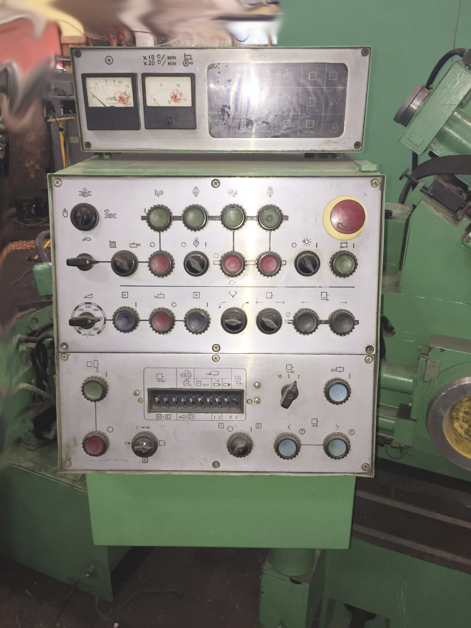 8. Лампа "Подача шлифовальной бабки" - синего цвета, расположена на пульті сигнализации (HL17 в зоне 3.10).